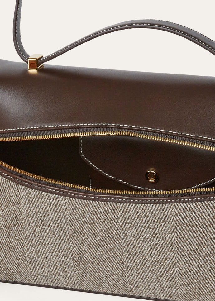 Внутренний кожаный карман с новой фирменной кнопкой в форме кольца Loro Piana и логотипом, выгравированным лазером.