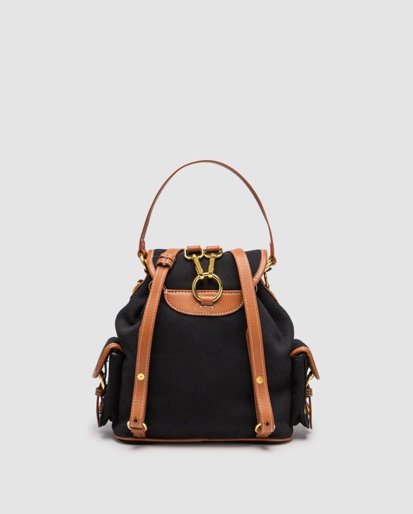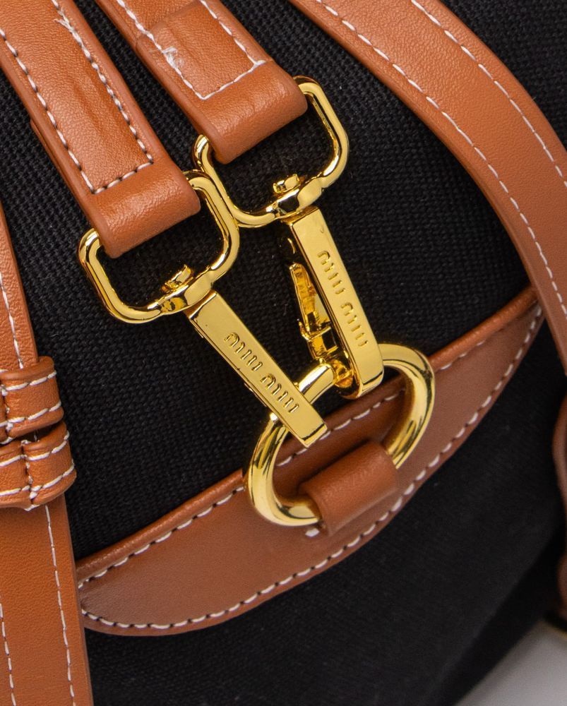 Этот рюкзак из парусины и кожи, вдохновленный школьной формой, напоминает о детстве и сочетает в себе изысканную и функциональную эстетику. Уникальный дизайн с множеством карманов воплощает современный и игривый дух сумок Miu Miu.