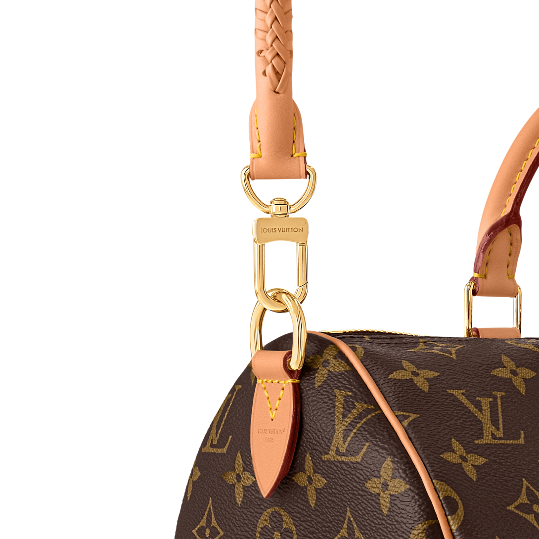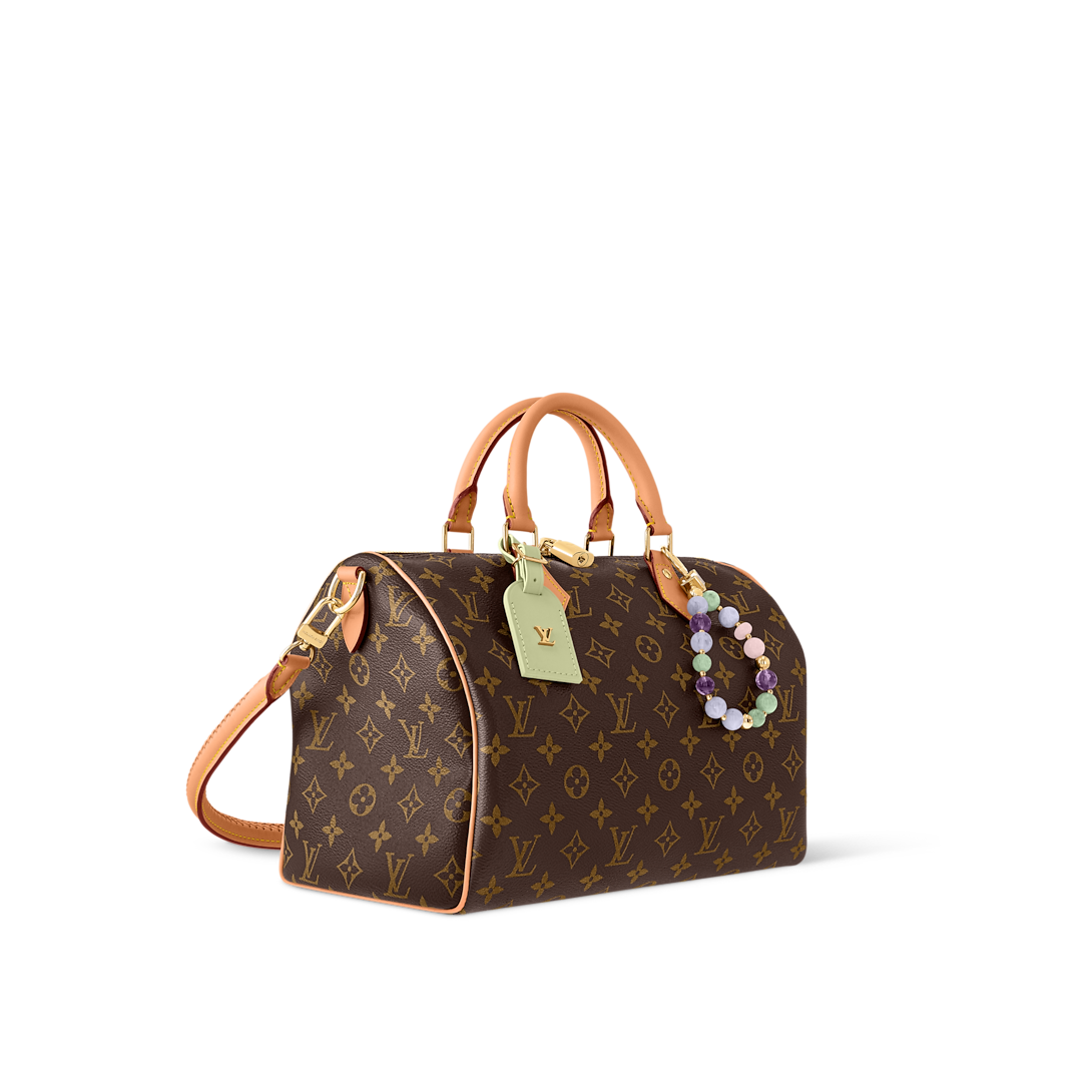 Легендарная сумка Speedy Soft 30 Lucky переосмыслена с помощью украшений, напоминающих драгоценные камни, и контрастной пастельной подкладки, подчеркивающей внимание к деталям. Она изготовлена из фирменной канвы Monogram с отделкой из натуральной кожи VVN и дополнена золотистой фурнитурой и уникальным талисманом, который можно снять при желании. Вместительная и универсальная модель позволяет разместить планшет и другие необходимые вещи.
