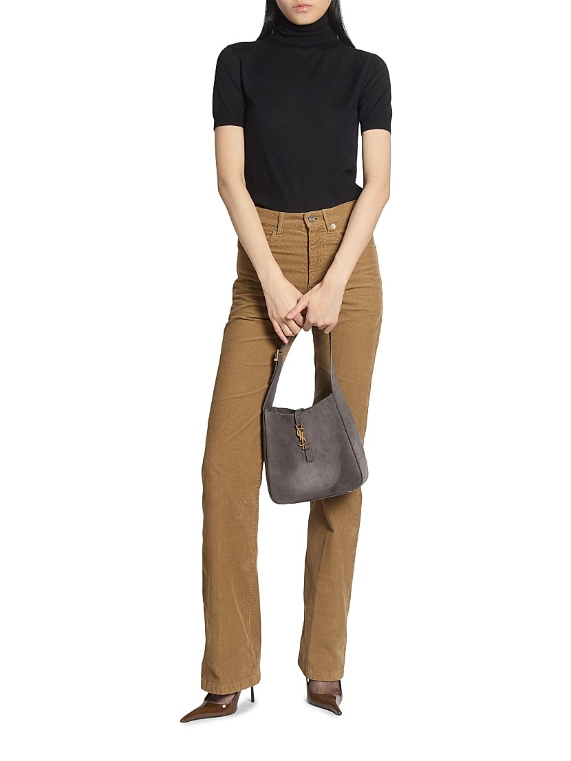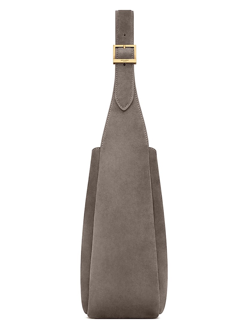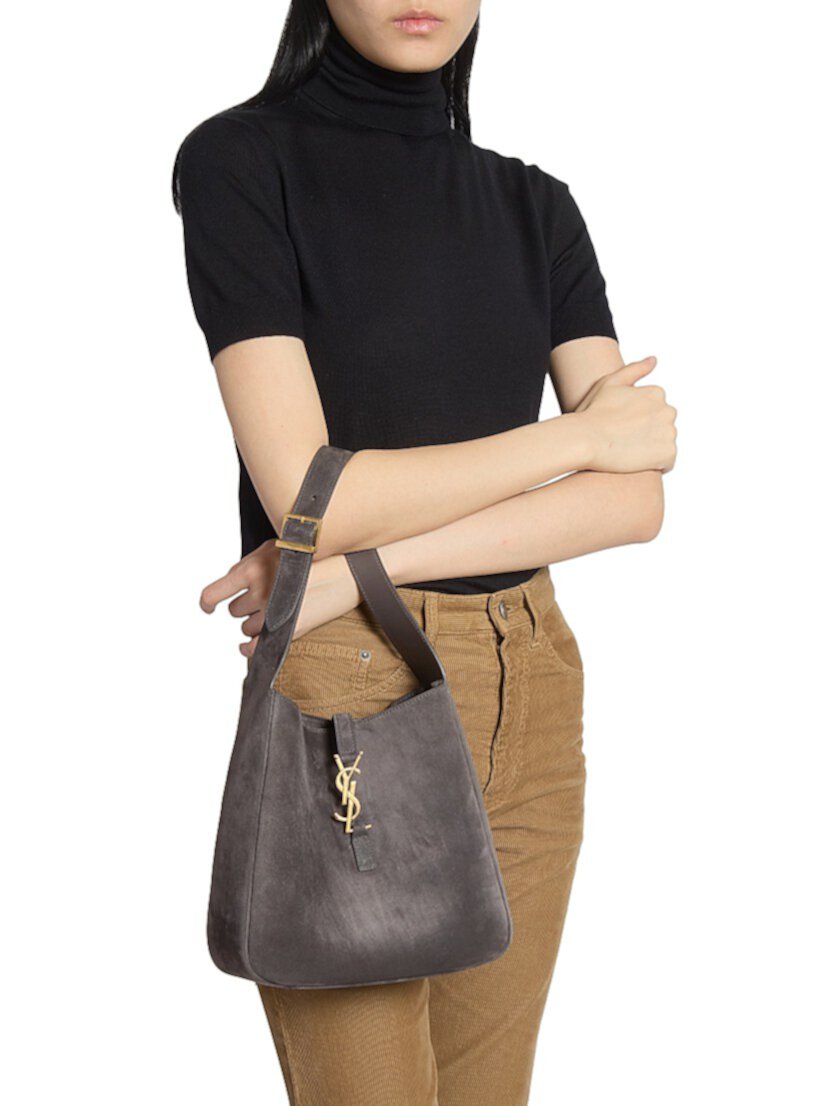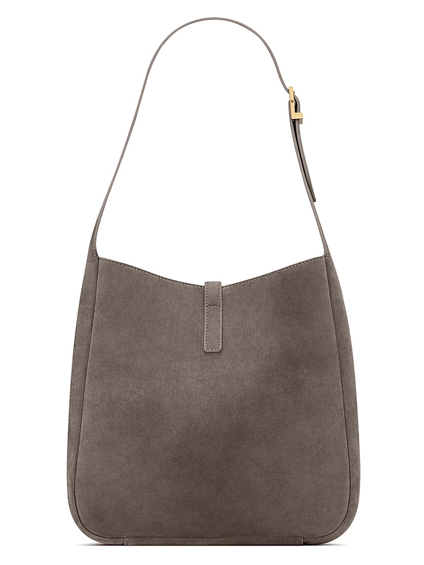 Сумка-тоут Le 5 à 7 от Saint Laurent, наполненная парижской элегантностью бренда, станет вечной инвестицией. Модель выполнена из замши серого оттенка и имеет элегантную застежку на крючок с монограммой.