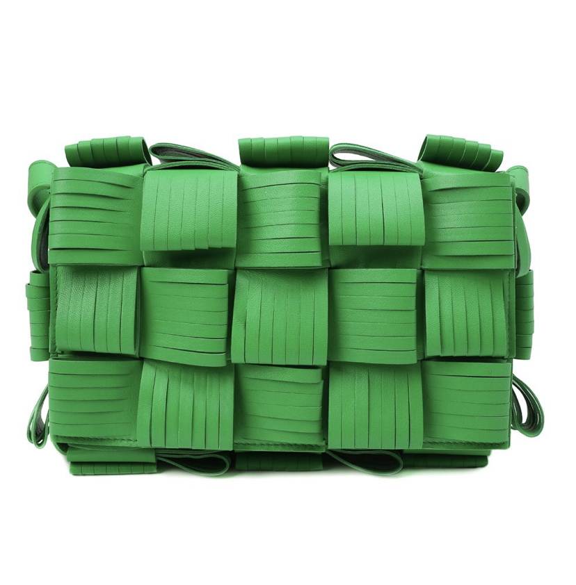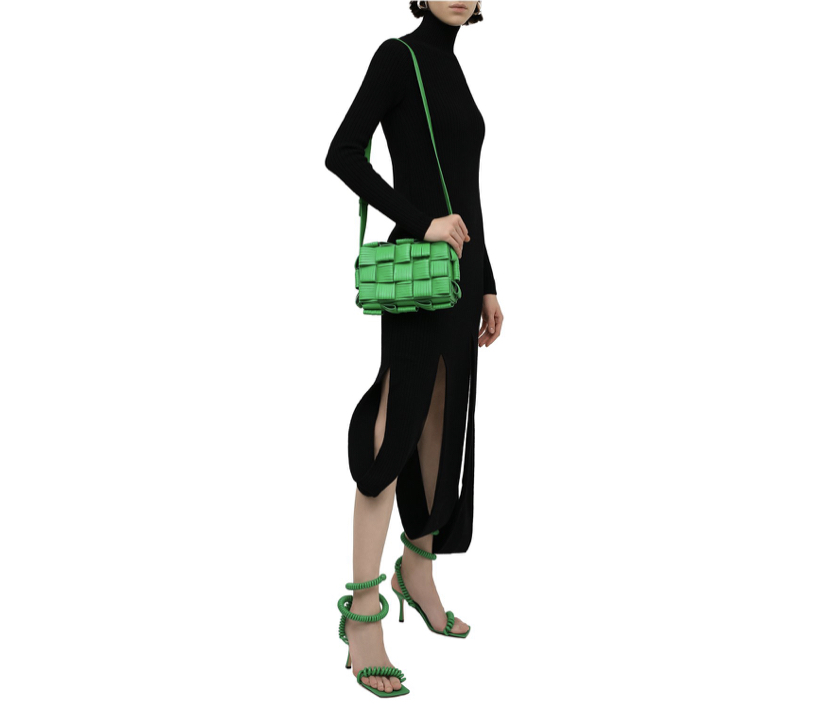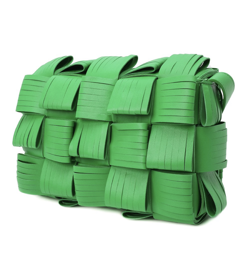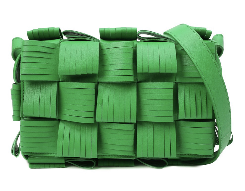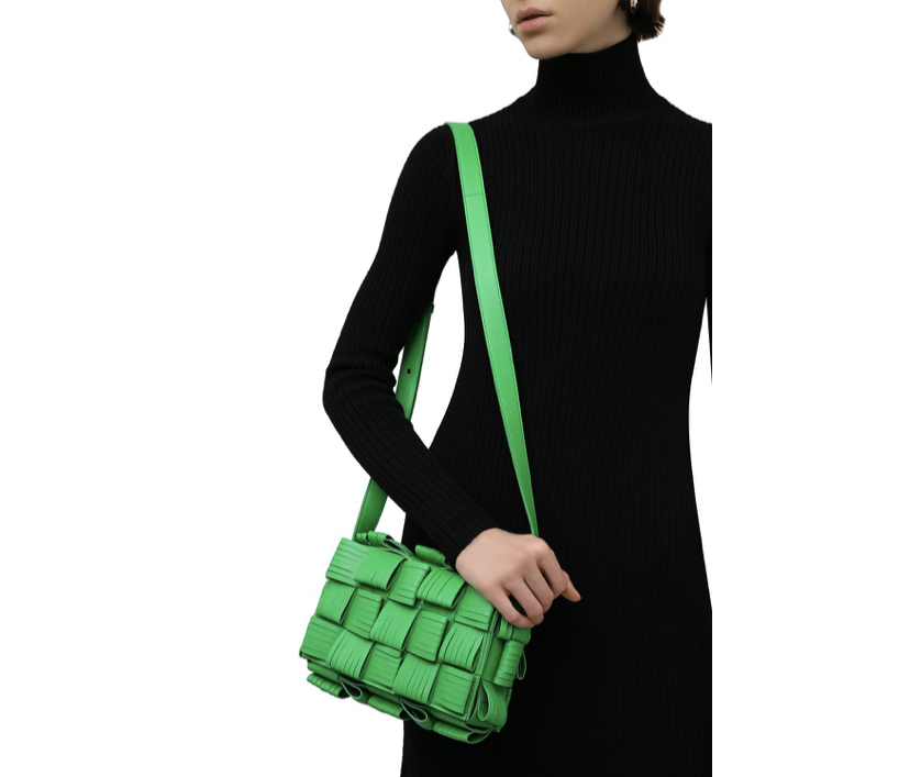 В сезоне осень-зима 2021 года Дэниел Ли продолжил экспериментировать с внешним видом плетения intrecciato. В случае с этой сумкой Cassette клетчатый узор получился еще более фактурным за счет разрезов на полосах нежной, приятной на ощупь кожи. Еще одним достоинством стал сочный травяной оттенок, который дизайнер марки назвал Parakeet. В прямоугольную модель с длинным плечевым ремнем поместятся кошелек, телефон, ключи и флакон любимого аромата.