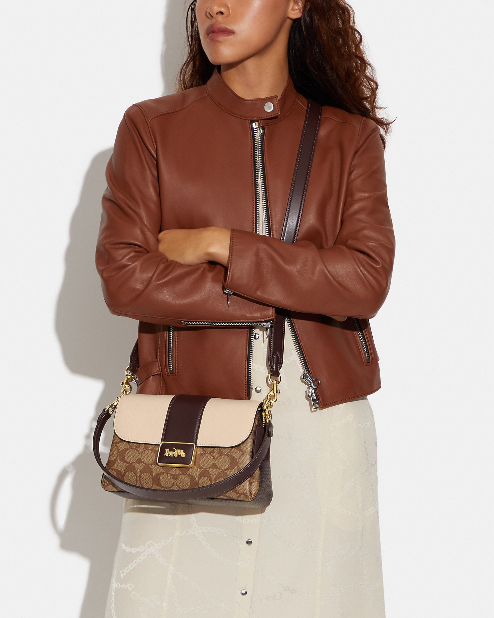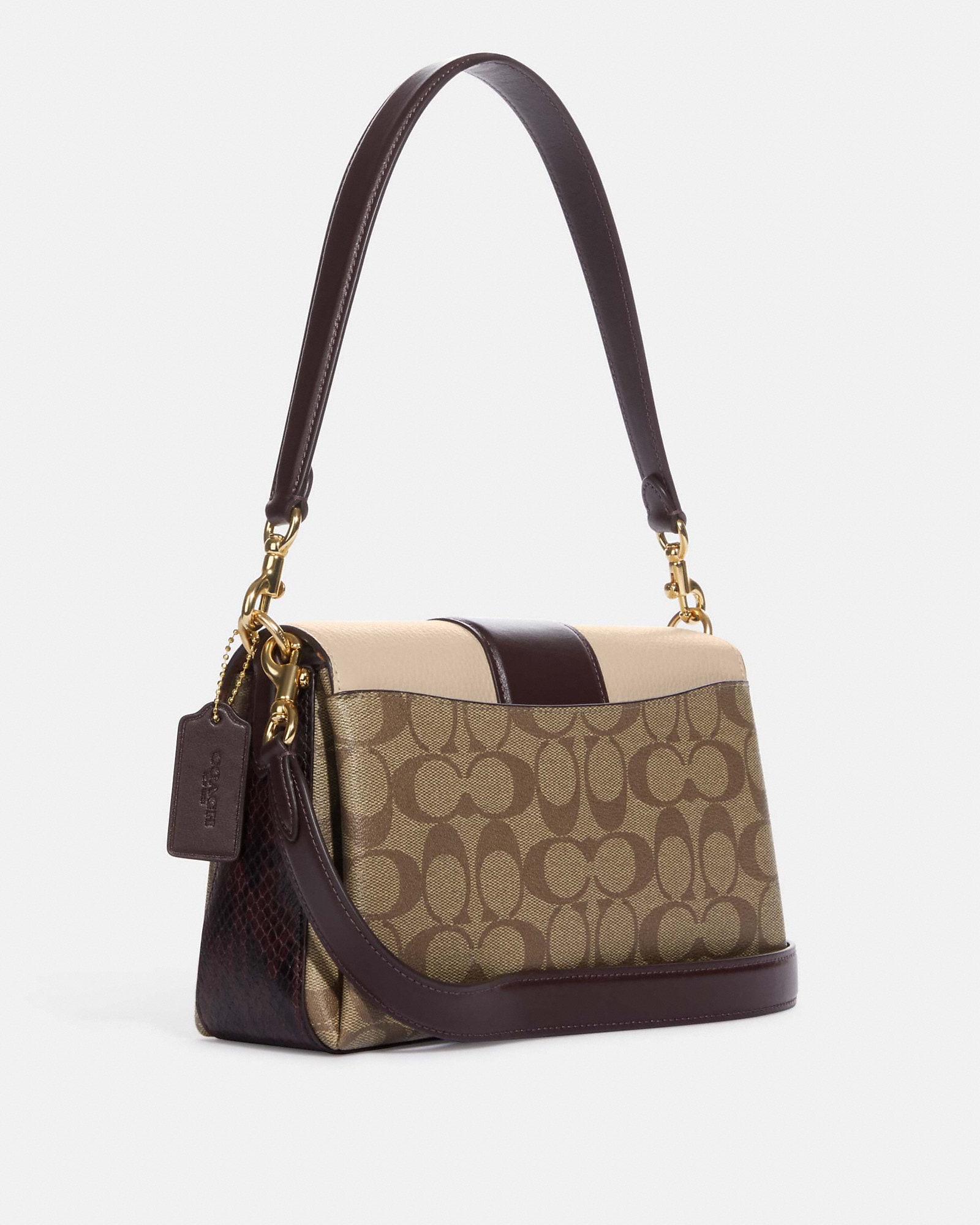 СумкиКанвас с фирменным покрытием, гладкая кожа, изысканная шагреневая кожа и кожа с тиснением под змею. Внутренний многофункциональный карман Застежка-молния, подкладка из ткани Съемная ручка с вылетом 8 1/4 дюйма Внешний открытый карман Съемный ремешок высотой 21 3/4 дюйма для ношения на плече или через плечо. 10 1/4 дюйма (Д) x 6 1/4 дюйма (В) x 3 1/4 дюйма (Ш)
