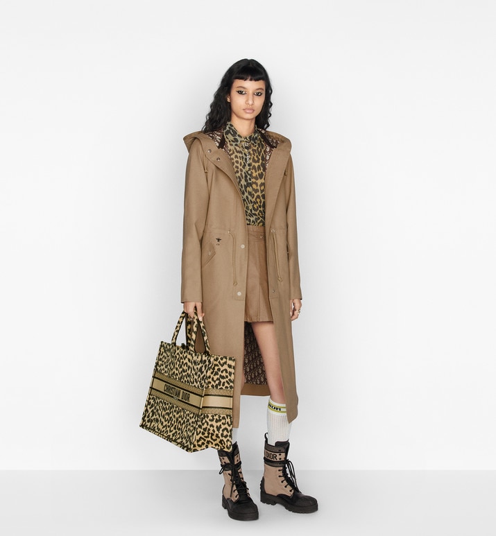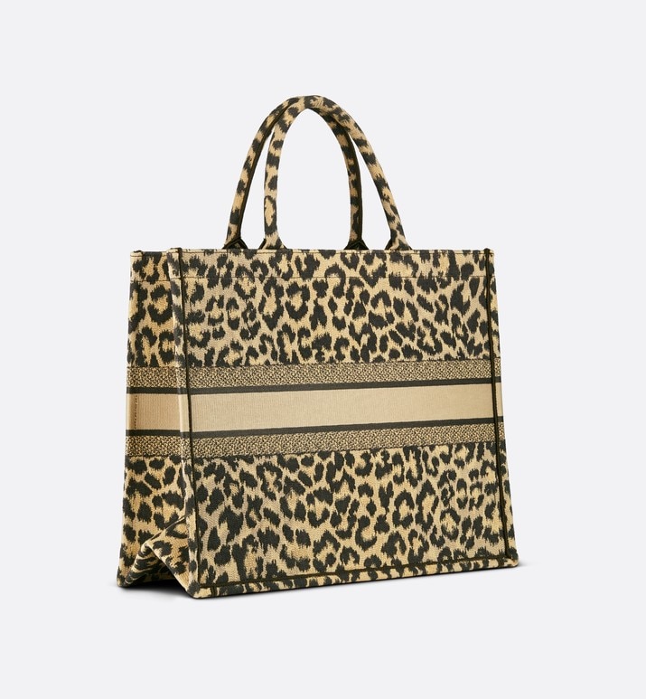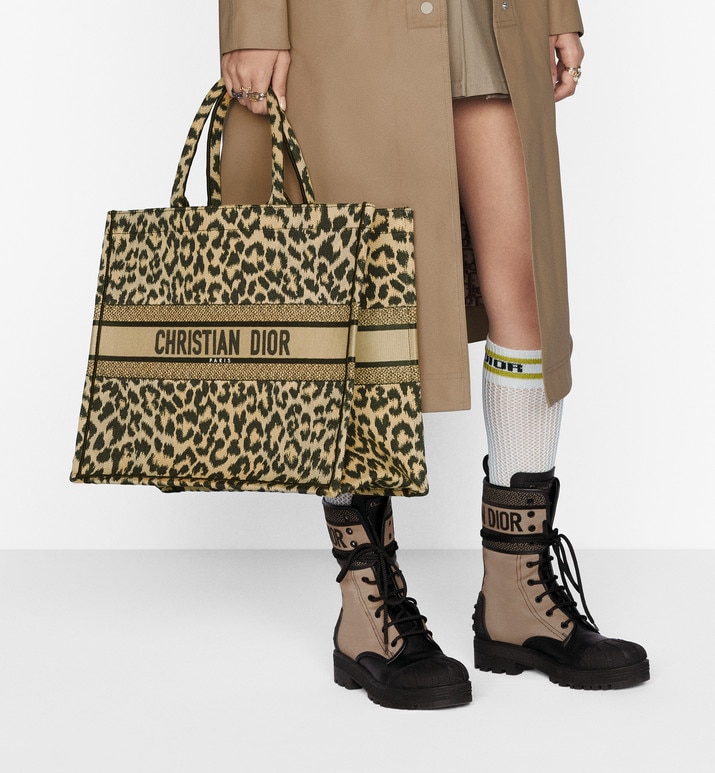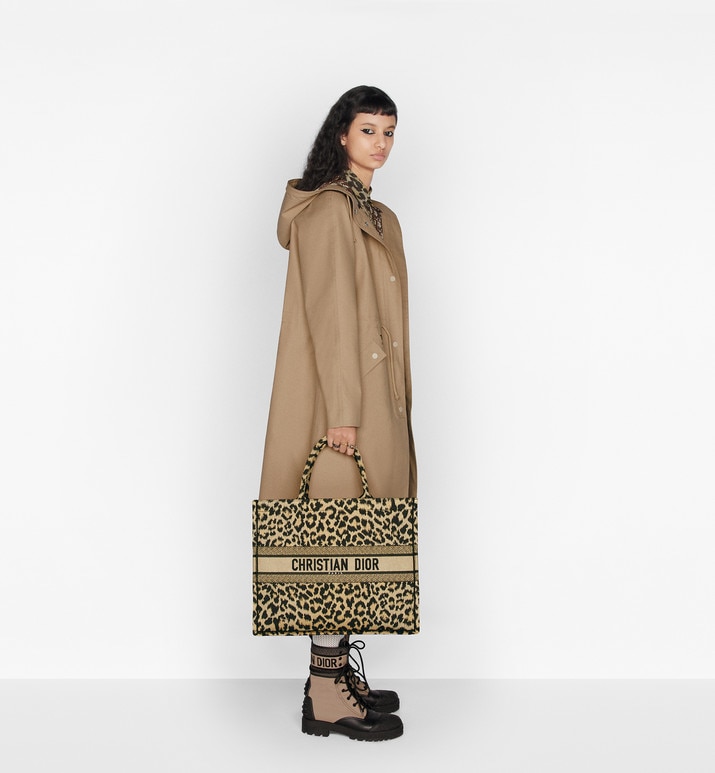 Сумка Dior Book Tote, созданная креативным директором Марией Грацией Кьюри,— неотъемлемая часть вселенной Dior. Модель, вмещающая все необходимые принадлежности, украшена сплошной многоцветной вышивкой Mizza в бежевых оттенках, созданной на основе леопардового узора из архивов модного дома. Модель, украшенная надписью “CHRISTIAN DIOR” спереди, наглядно демонстрирует традиции мастерства модного дома. Сумку-тоут можно носить в руке или на плече.