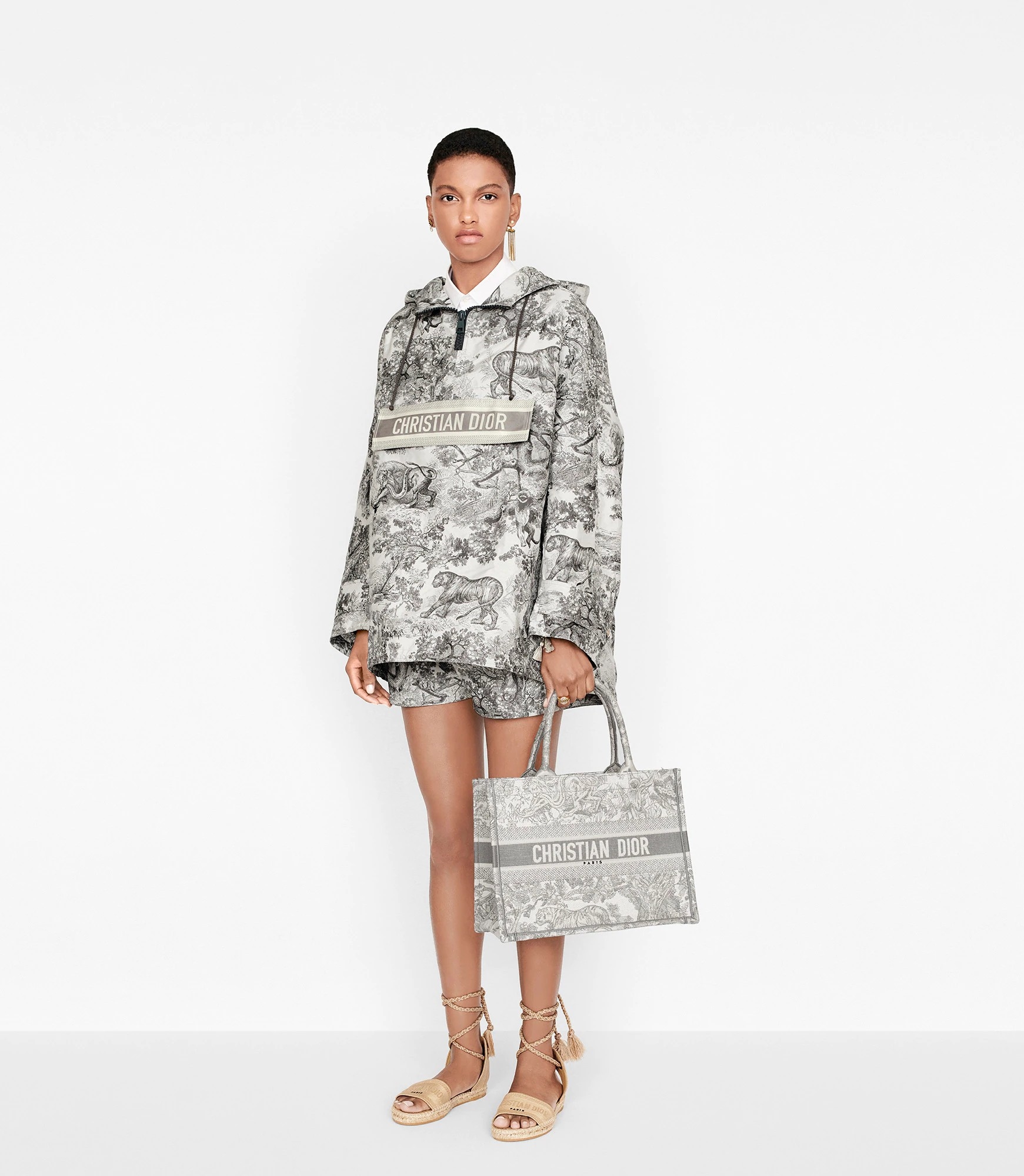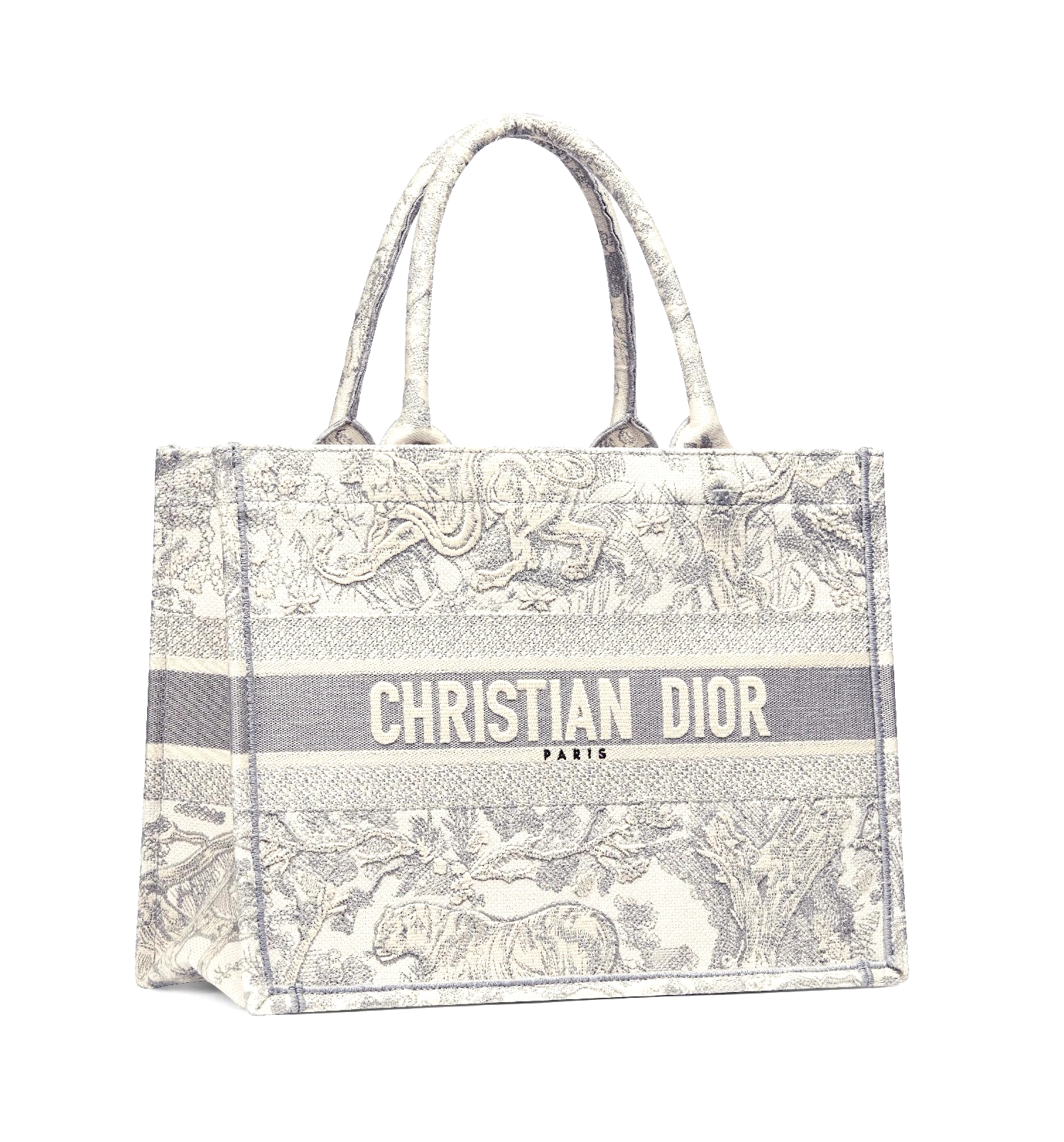 Сумка Dior Book Tote, оригинальное творение арт-директора Christian Dior Марии Грации Кьюри, уже превратилась в современную классику. Модель маленького формата, вкоторой найдется место для всего самого необходимого в повседневной жизни, украшена по всей поверхности вышитым узором Toile de Jouy серого цвета и надписью “Christian Dior” спереди. Эта сумка-тоут, вошедшая в капсульную коллекцию Dioriviera, являет собой прекрасный образец виртуозного мастерства Dior.