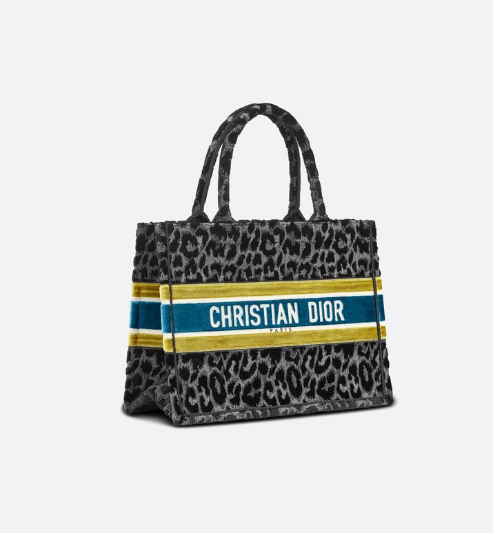 Оригинальная сумка Dior Book Tote, созданная креативным директором Dior Марией Грацией Кьюри, занимает важное место в эстетической концепции модного дома. Модель, вмещающая все необходимые мелочи, украшена многоцветной вышивкой Mizza серого цвета, созданной на основе леопардового мотива из архивов модного дома. Она выполнена матовой хлопковой нитью, которая подчеркивает шелковистость бархата. Сумка-тоут маленького формата, украшенная трехцветной надписью “CHRISTIAN DIOR” спереди, воплощает в себе мастерство модного дома. Ее можно носить в руке или на плече.