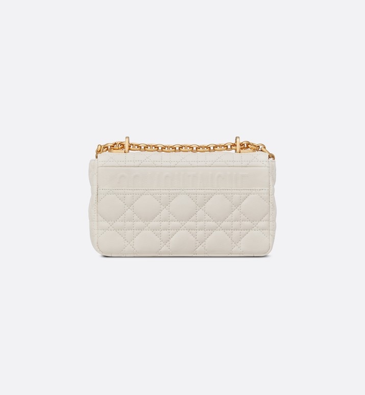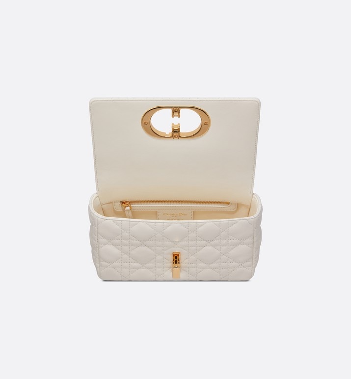 Новая сумка Dior Caro из телячьей кожи цвета слоновой кости имеет узнаваемую стеганую текстуру с узором Cannage, выполненным строчкой. Мягкую сумку отличает клапан с поворотным замком “CD” из металла цвета состаренного золота в стиле печати на флаконе духов Christian Dior. Съемный плечевой ремень со звеньями “CD” можно заменить на широкий ремень с вышивкой. Сумка маленького размера придаст современное изысканное звучание дневному или вечернему образу.