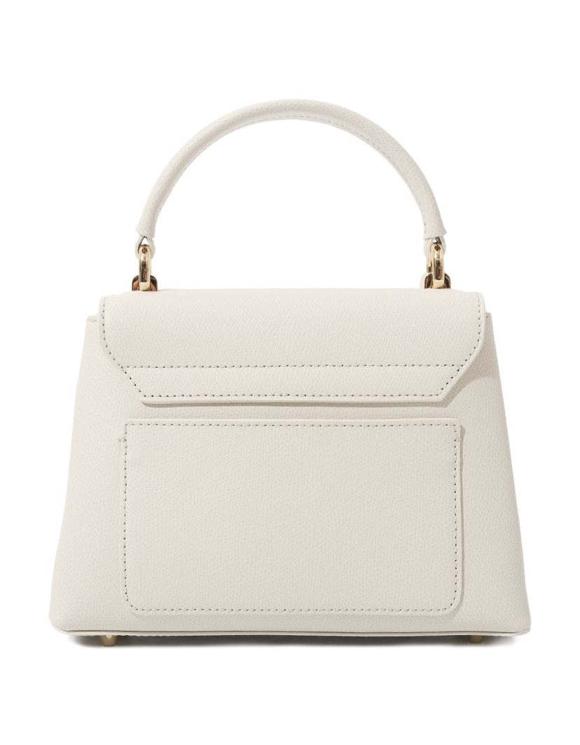 - Кремовая трапециевидная сумка 1927 с короткой ручкой и съемным плечевым ремнем сшита из зернистой матовой кожи. Внутри — одно отделение, в которое поместятся смартфон, флакон любимого аромата и кошелек. Небольшой аксессуар застегивается на арочный поворотный замок, выполненный в виде эмблемы марки, основанной Альдо Фурланетто.