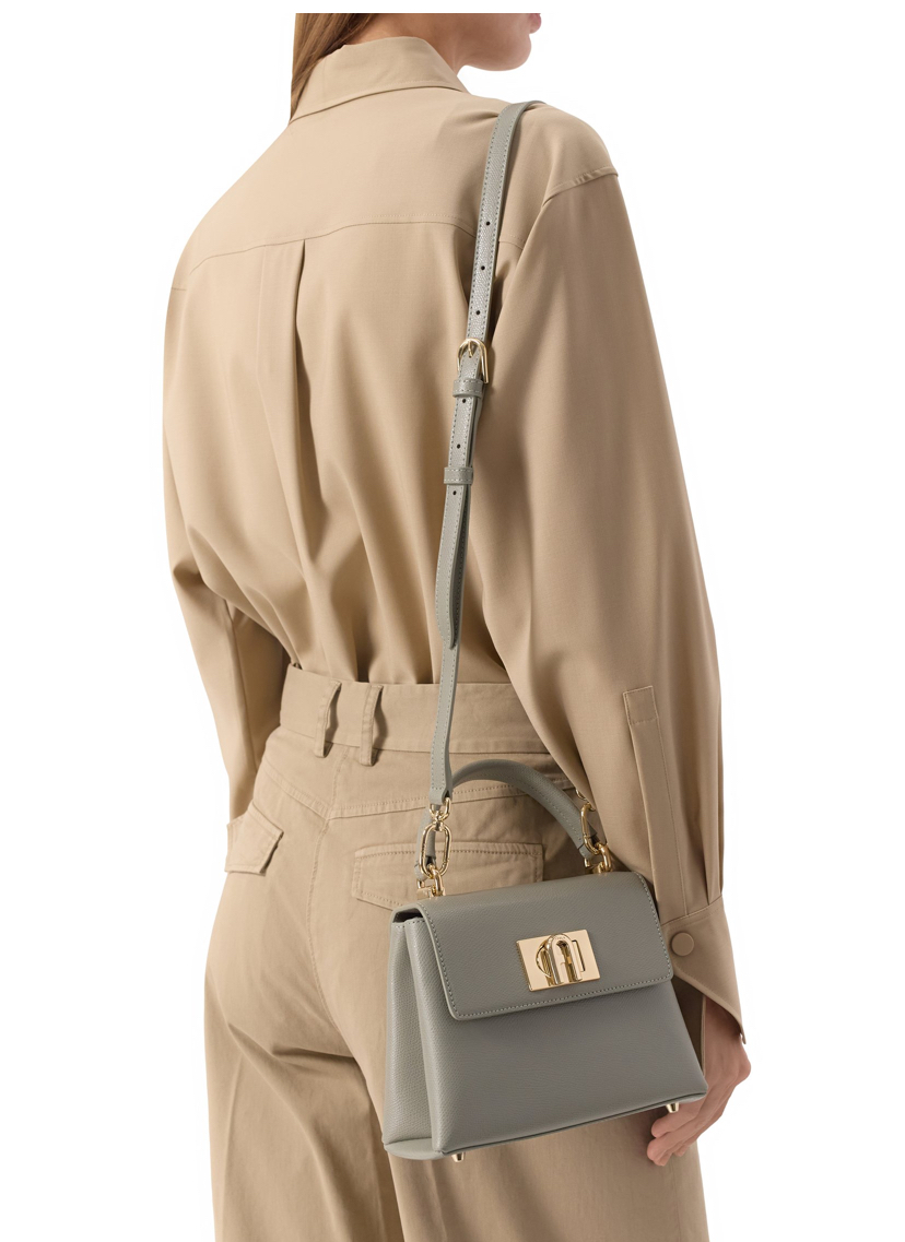 - Сумку Furla 1927 со съемным плечевым ремнем, регулируемым по длине, сшили из тисненой кожи. Внутри разместили карман на молнии, а на задней панели снаружи — открытый карман. Модель закрывается поворотным замком в виде эмблемы Arch.
