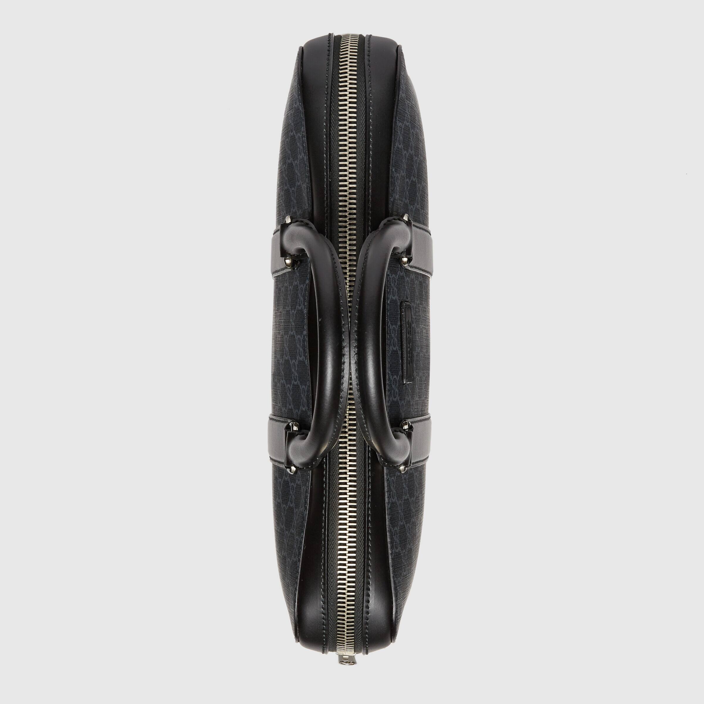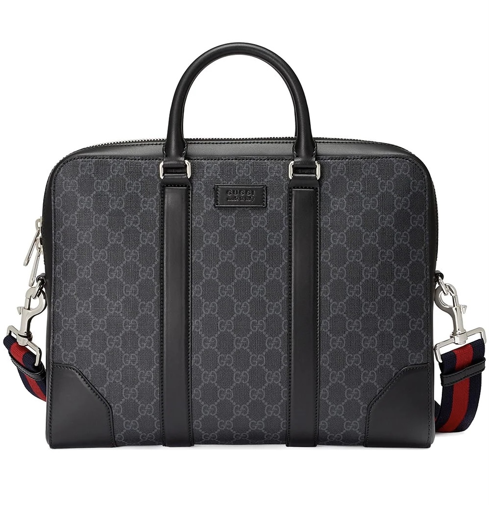 - Фирменный текстиль GG Supre остается неизменным символом Дома благодаря своей мягкости и пластичности. Материал из микроволокна со специальным покрытием представлен полностью в черном цвете в дизайне этого портфеля. Отделка из кожи в тон завершает дизайн, а архивная полоса Web привносит яркий акцент.