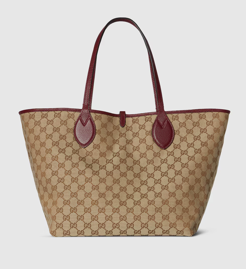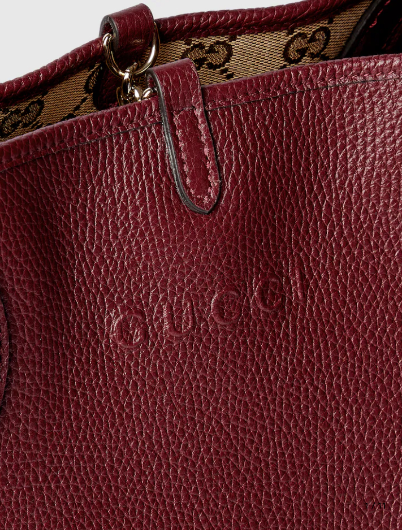 Представляем двустороннюю модель сумки Gucci Totissima, сочетающую два разных образа в одном изделии: одна сторона выполнена из зернистой кожи, а другая — из канвы GG. Название «Totissima» образовано от слова «tote» (сумка-тоут) и итальянского прилагательного «самая лучшая», что подчеркивает функциональность и неизменный стиль сумки.