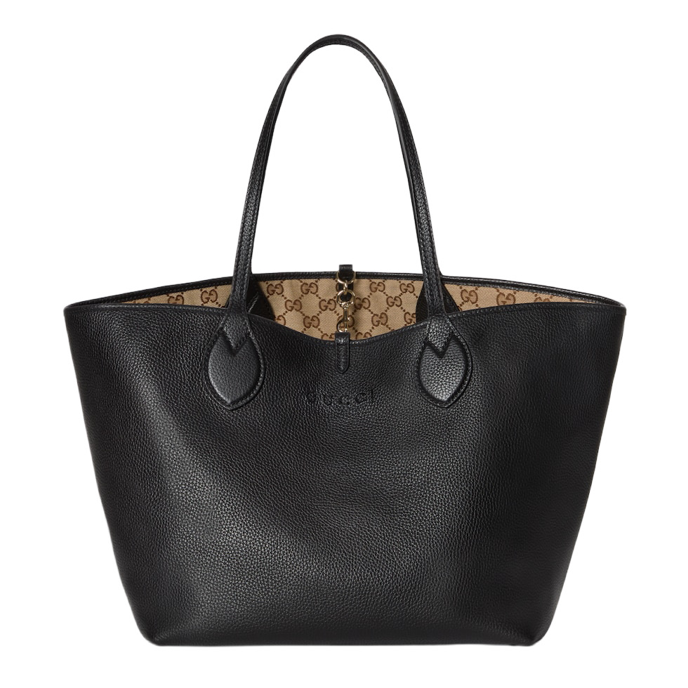 Представляем двустороннюю модель сумки Gucci Totissima, сочетающую два разных образа в одном изделии: одна сторона выполнена из зернистой кожи, а другая — из канвы GG. Название «Totissima» образовано от слова «tote» (сумка-тоут) и итальянского прилагательного «самая лучшая», что подчеркивает функциональность и неизменный стиль сумки.