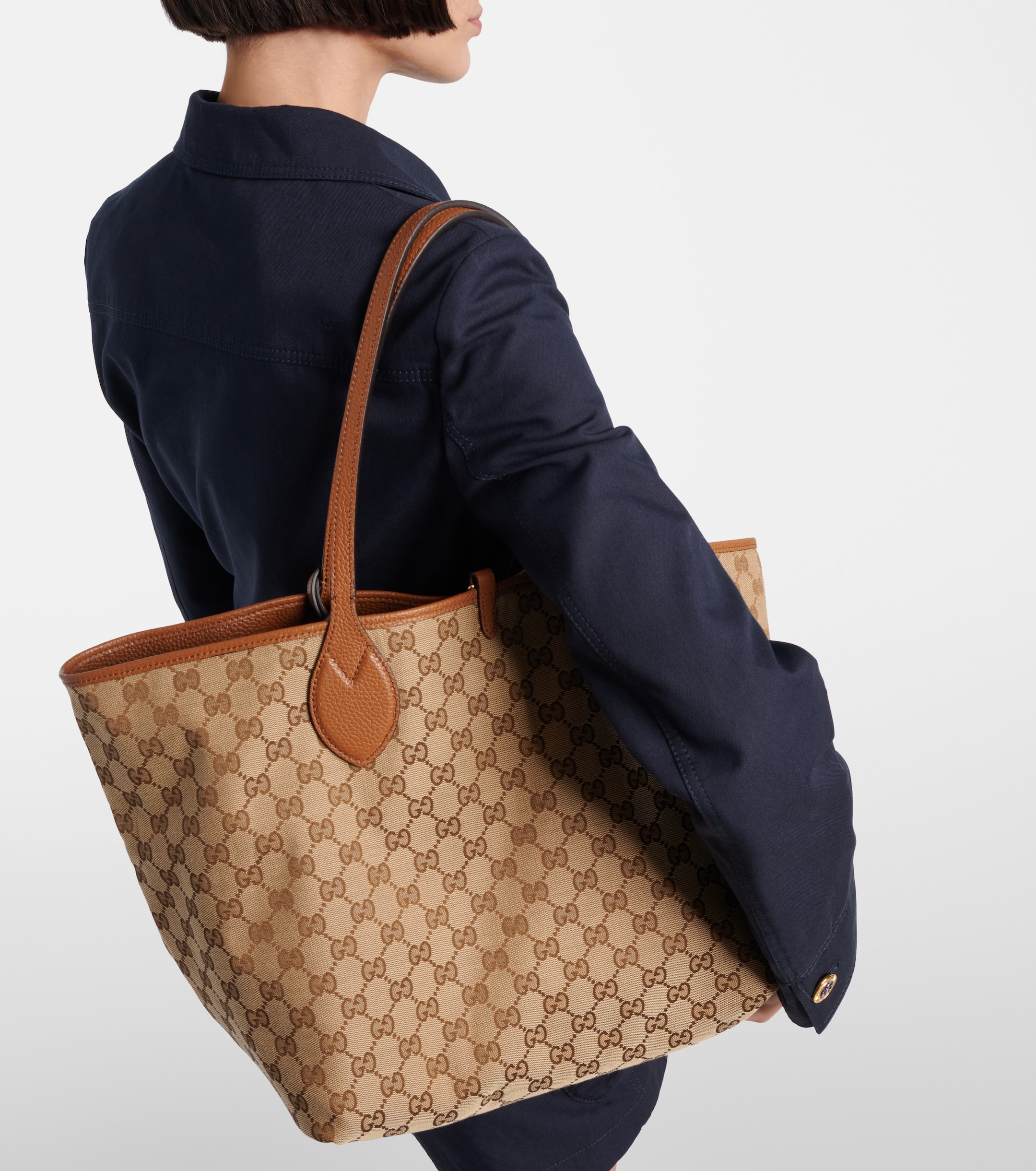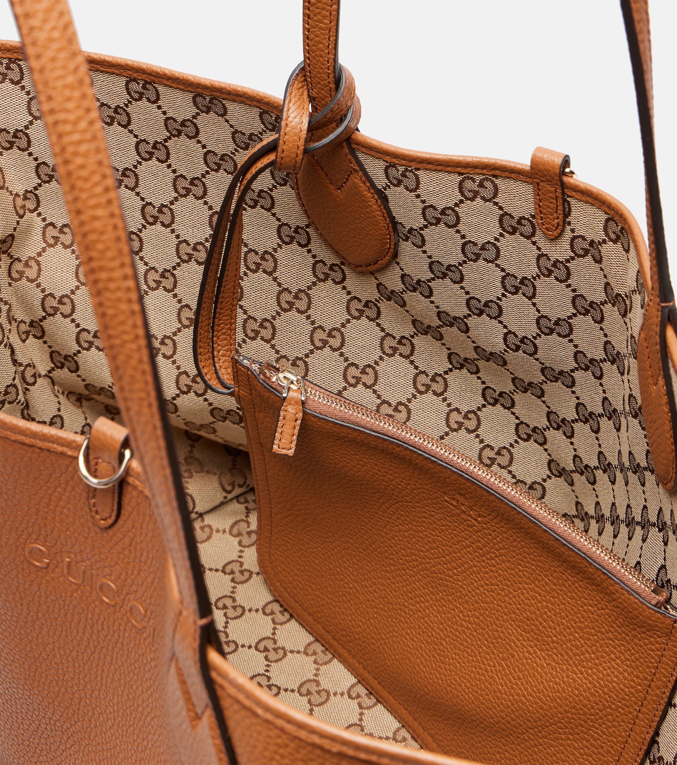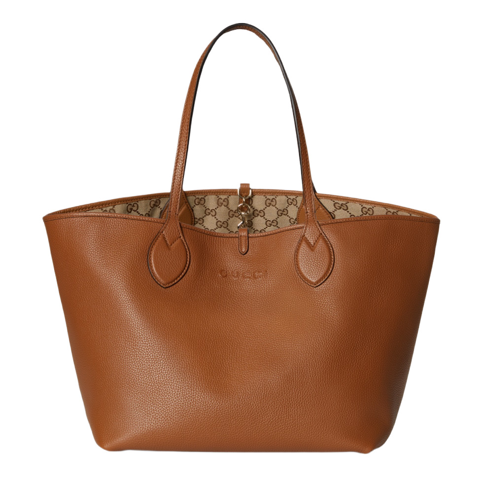 Представляем двустороннюю модель сумки Gucci Totissima, сочетающую два разных образа в одном изделии: одна сторона выполнена из зернистой кожи, а другая — из канвы GG. Название «Totissima» образовано от слова «tote» (сумка-тоут) и итальянского прилагательного «самая лучшая», что подчеркивает функциональность и неизменный стиль сумки.