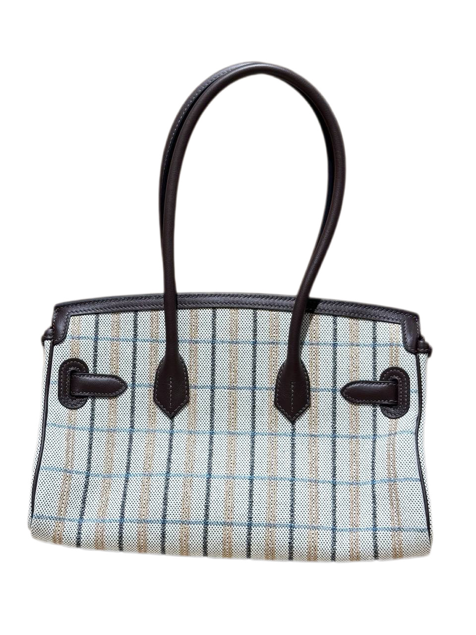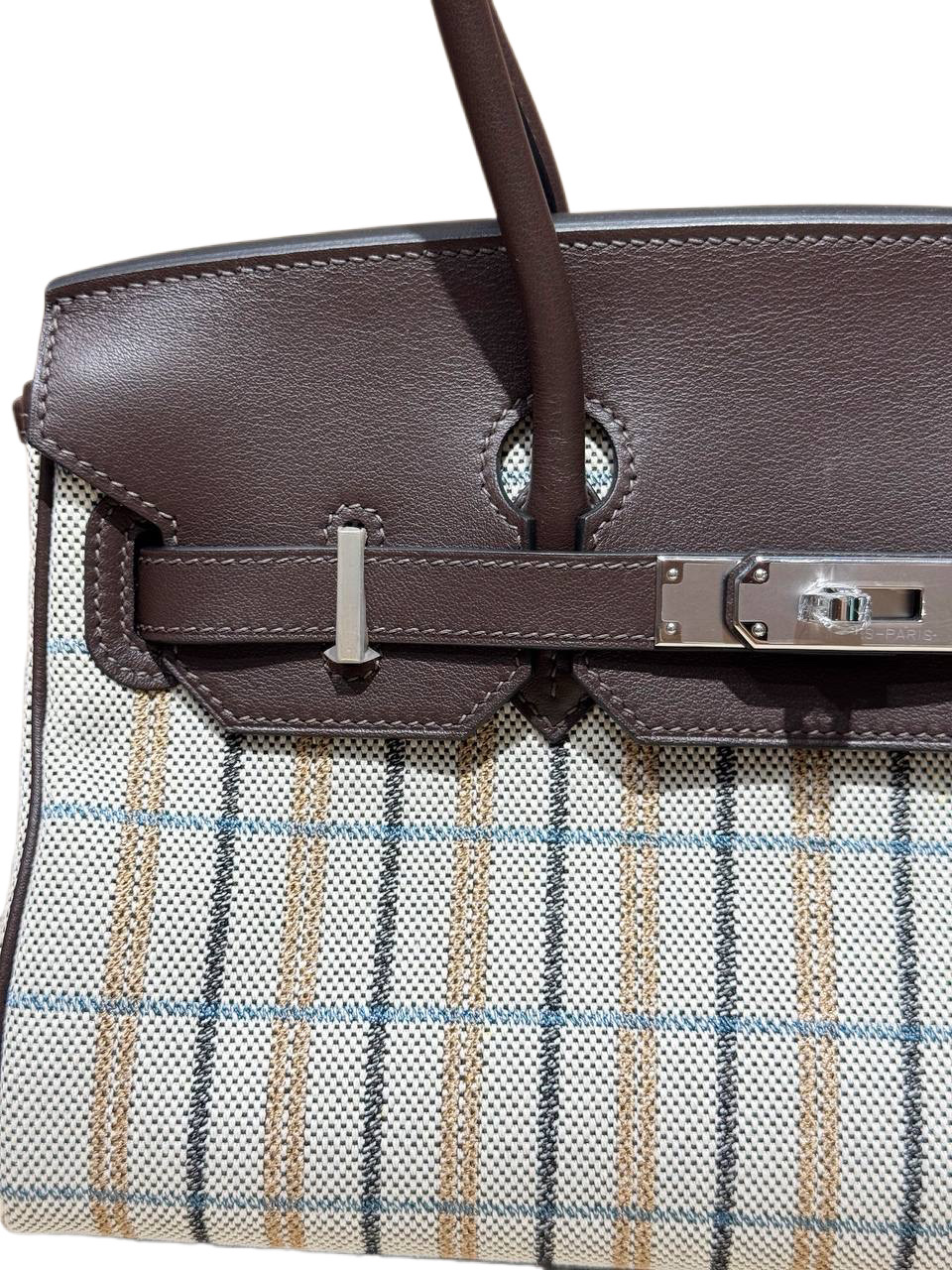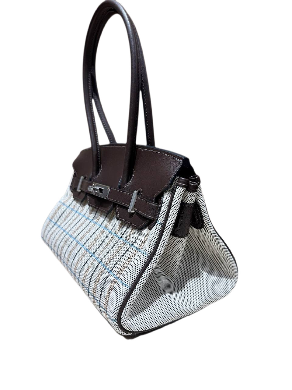 Эта сумка Birkin Light 29 выполнена из разноцветной кожи туаль и темно-коричневойкожи Swift с палладиевой фурнитурой, имеет тональную строчку, два ремня с застежкой-тогл спереди, клошет с замком и двумя ключами и двойные ручки-подкладки.