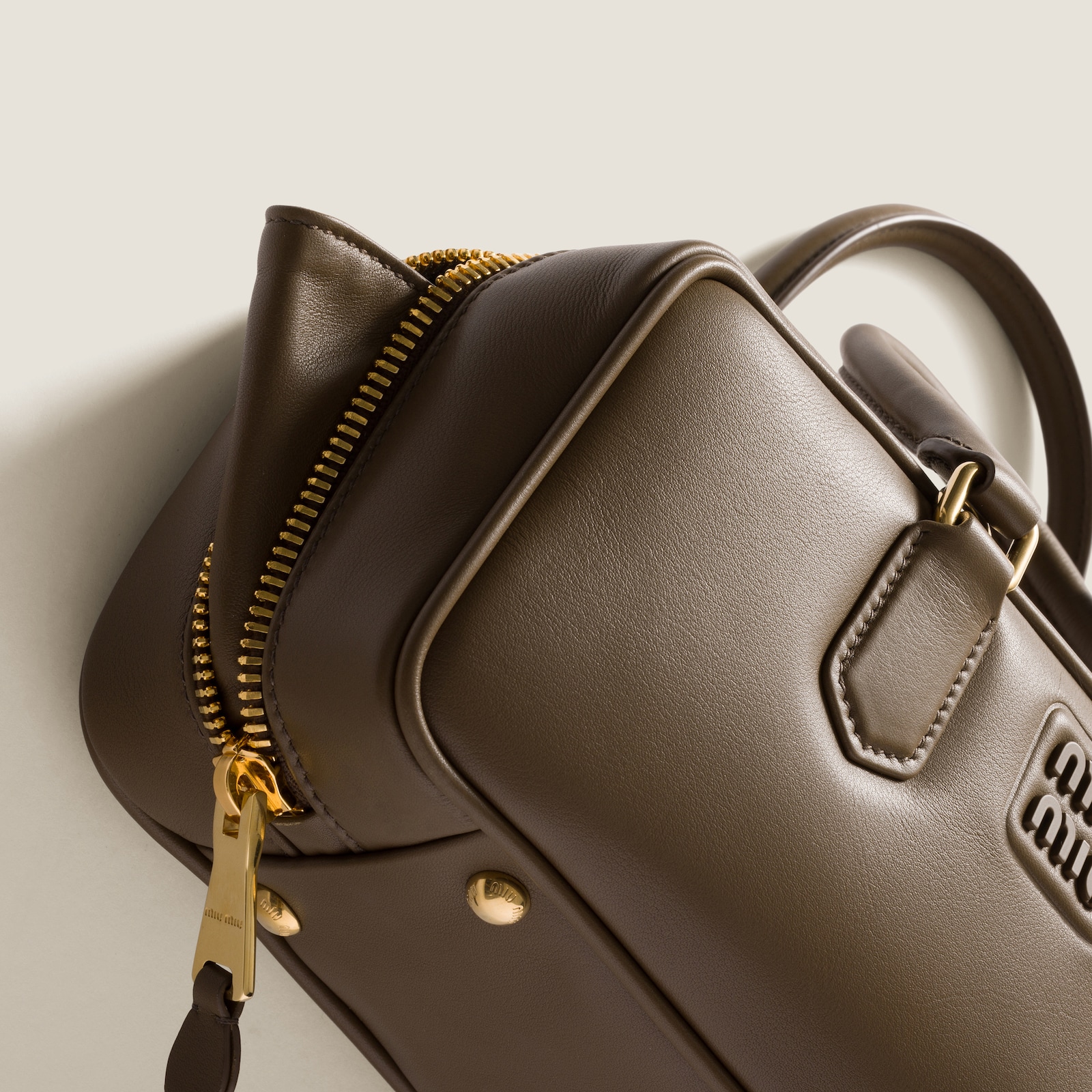 Эта кожаная сумка Arcadie воплощает концепцию моды как способа воплощения реакции на текущую реальность в определенную форму. Легкая подкладка придает аксессуару объем и космополитичный стиль. Буквенный логотип стирает границы между функциональностью и декором, помогая подчеркнуть самобытную и культовую эстетику сумки с верхней ручкой.