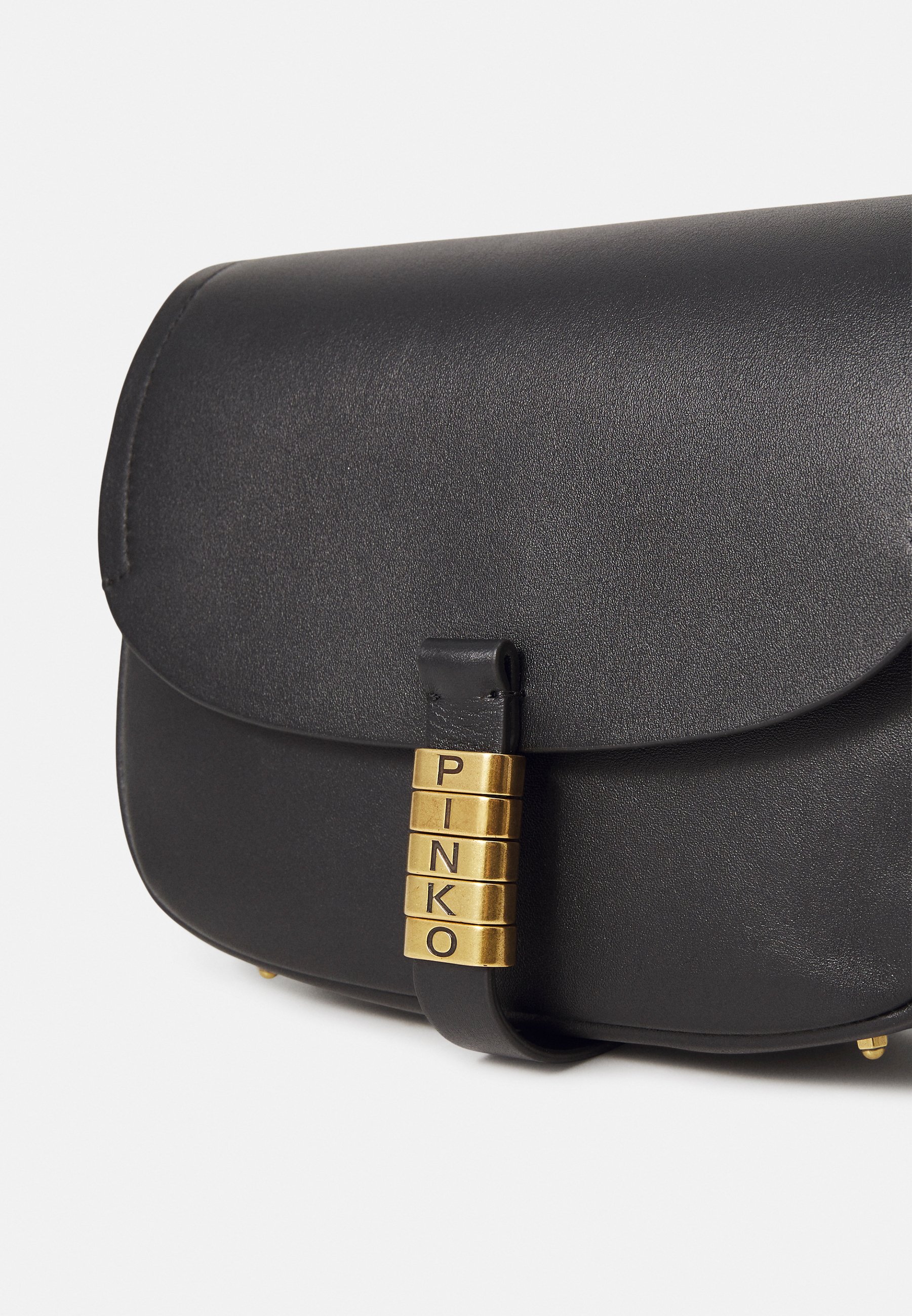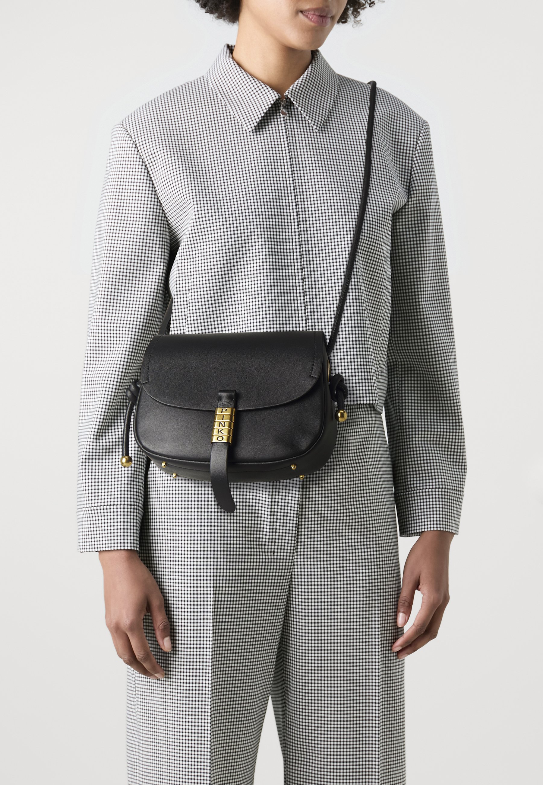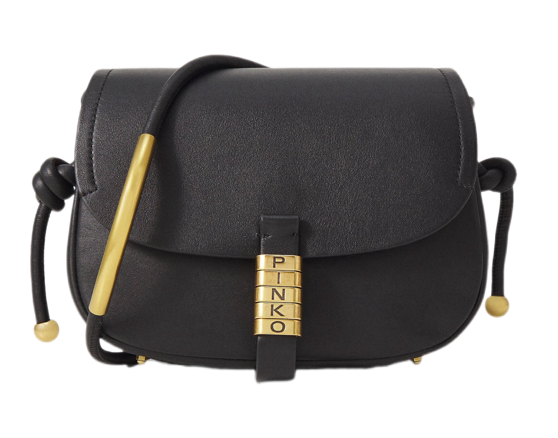 Маленькая дневная полужесткая сумка кросс-боди Saddle округлой формы изготовлена из мягкой гладкой кожи. Несъемный плечевой ремень из кожи, позволяющий носить аксессуар как практичную кросс-боди, отличают металлические вставки и декоративные узлы по бокам. Застежка-клапан на потайной магнитной кнопке украшена кожаным ремешком с фирменными металлическими элементами PINKO. Внутреннее отделение на подкладке из замшевой микрофибры дополнено плоским карманом на молнии.