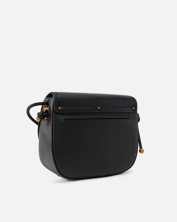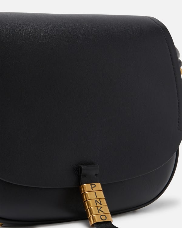 Большая дневная полужесткая сумка кросс-боди Saddle округлой формы изготовлена из мягкой гладкой кожи. Несъемный плечевой ремень из кожи, позволяющий носить аксессуар как практичную кросс-боди, отличают металлические вставки и декоративные узлы по бокам. Застежка-клапан на потайной магнитной кнопке украшена кожаным ремешком с фирменными металлическими элементами PINKO. Внутреннее отделение на подкладке из замшевой микрофибры дополнено плоским карманом на молнии.