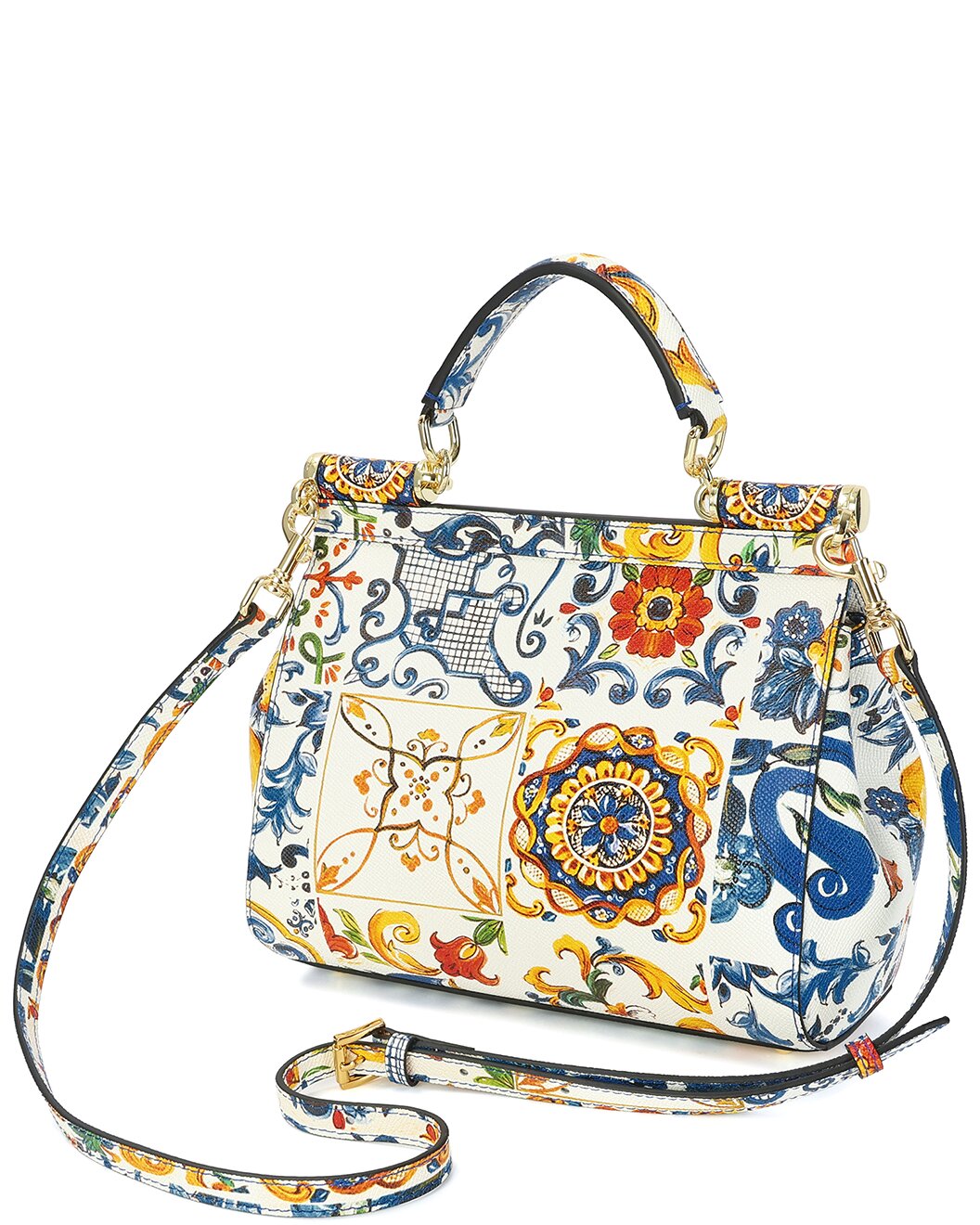 - Детали дизайна: золотистая фурнитура, сафьяновая ткань с принтом