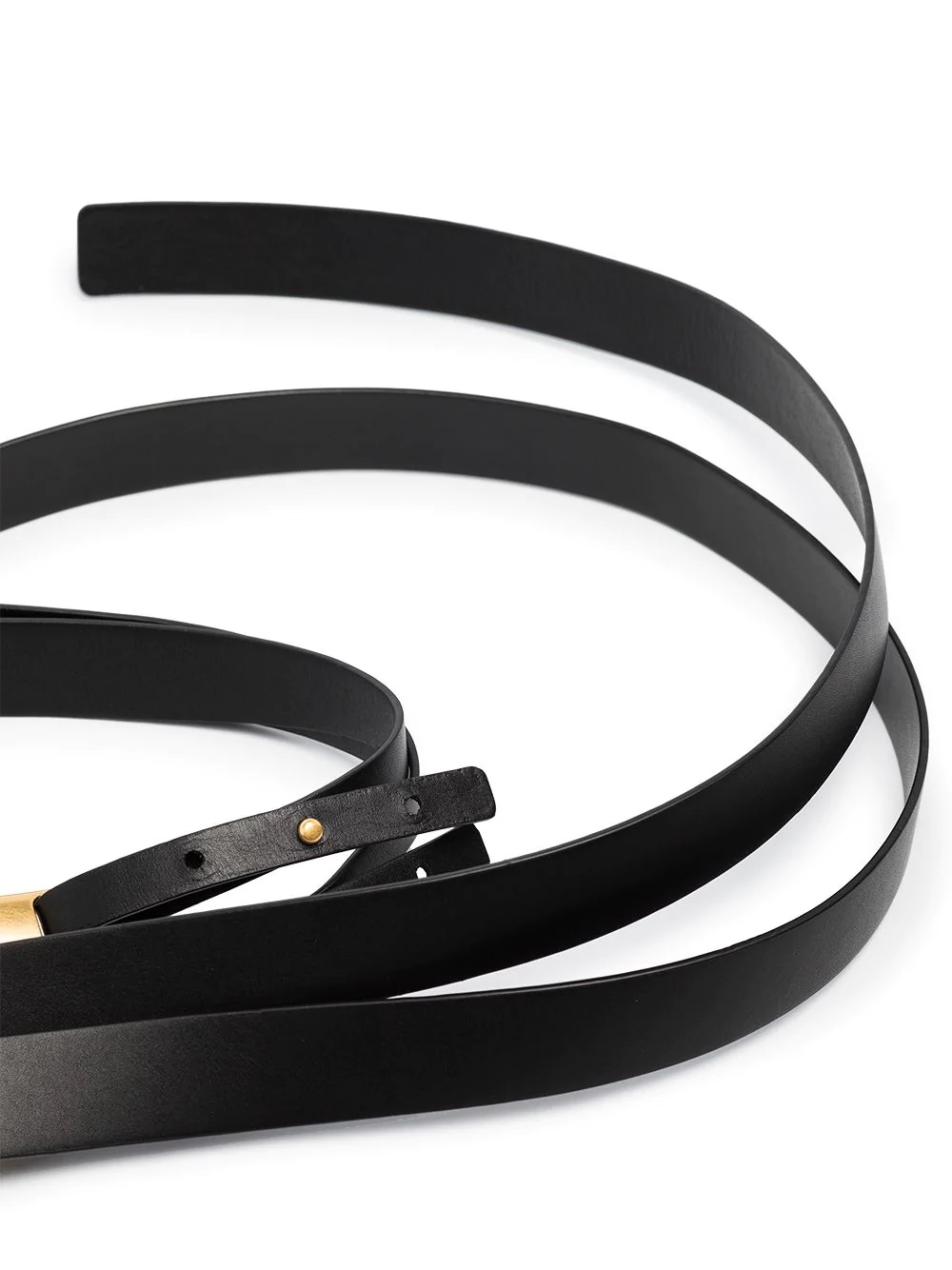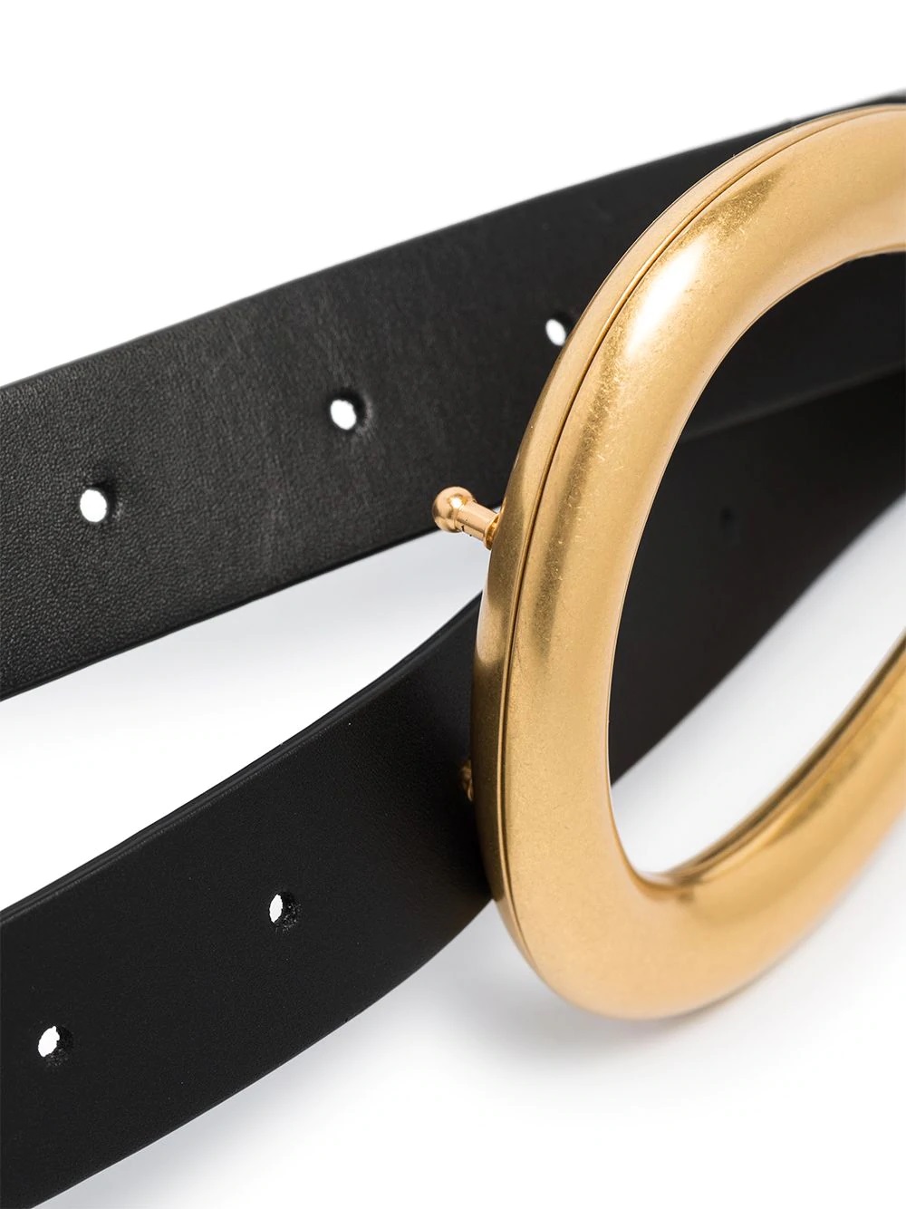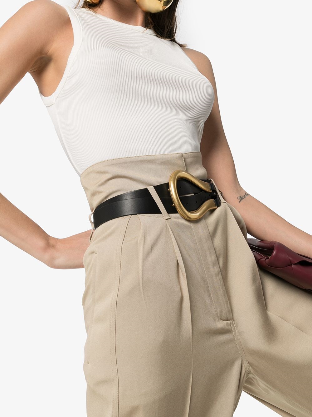 Ремень с двумя пряжками от Bottega Veneta. Ровная поверхность с матовым покрытием, золотистая пряжка и регулируемая застежка. Цвет: черный.