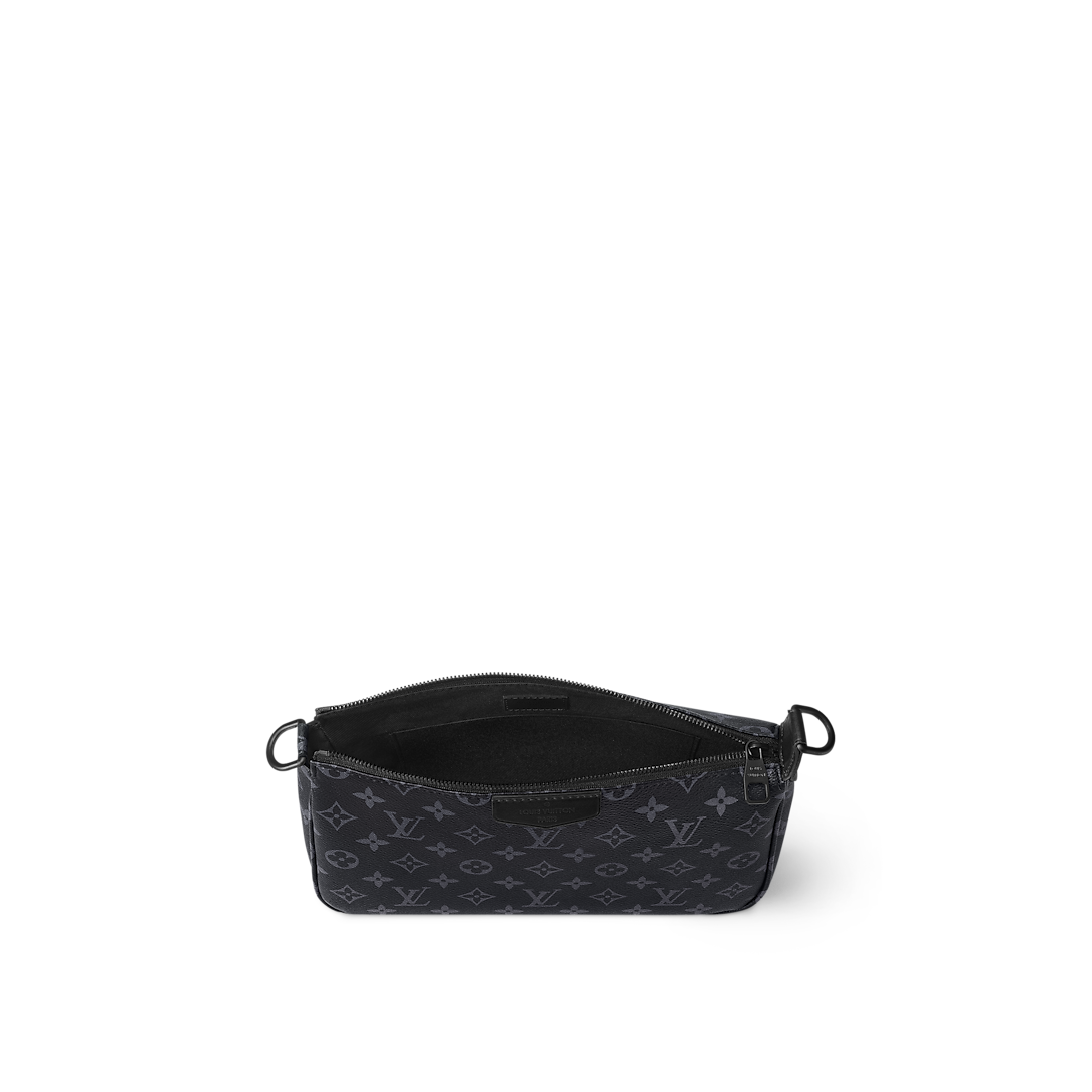 Сумка Pochette Accessoire XL из канвы с покрытием Monogram Eclipse имеет вместительное основное отделение на молнии и внутренний карман для хранения вещей. Эта мужская интерпретация культовой модели House 90-х отличается такими деталями, как именной бейдж, съемный текстильный ремешок и черные металлические детали. Ремешок регулируется для ношения на плече или через плечо.