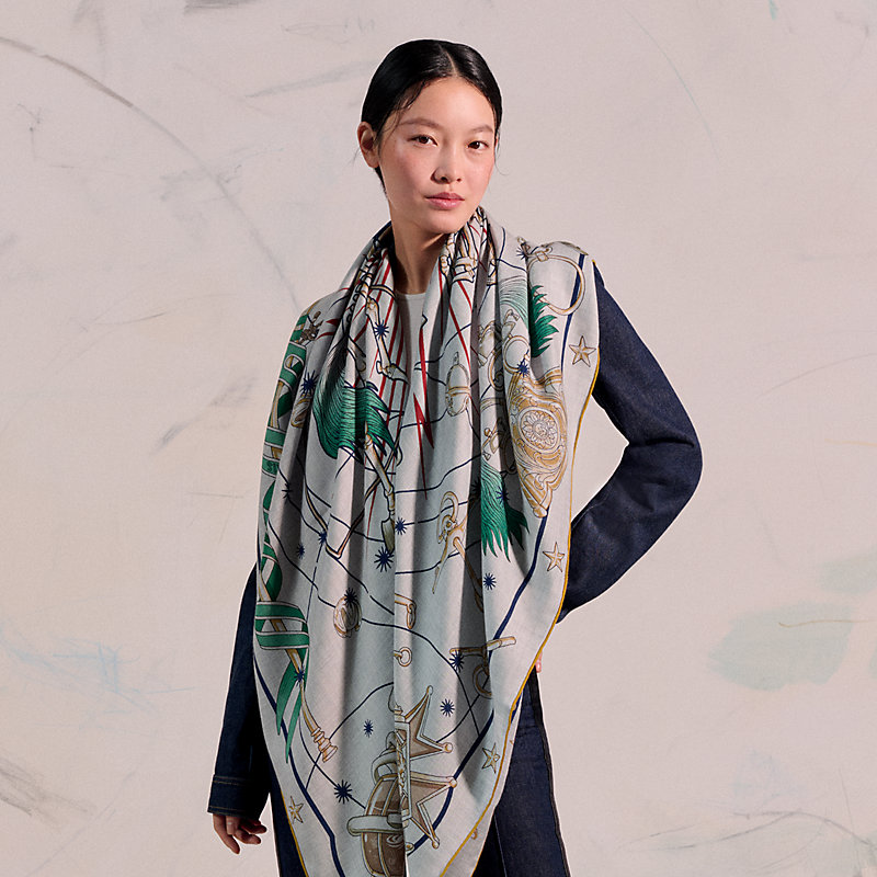 Шаль из кашемира и шелка с обработанными вручную краями (70% кашемира, 30% шелка).