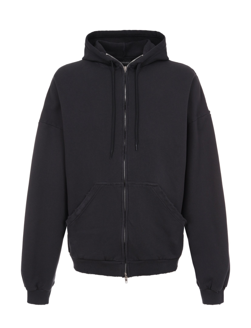 Толстовку силуэта oversize выполнили из хлопкового трикотажа с фактурной изнанкой. Модель с регулируемым капюшоном и двумя накладными карманами украсили логотипом Security Tape, словно выложенным клейкой лентой на спинке.