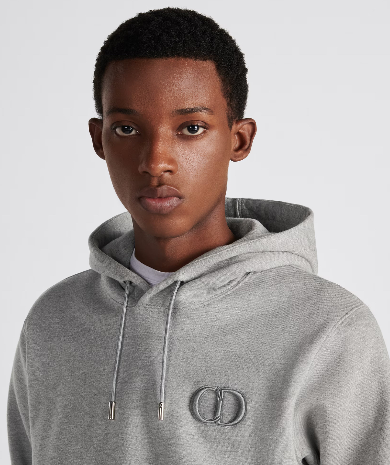 Худи выполнено из хлопкового флиса серого цвета. Мягкая и комфортная модель украшена вышивкой CDIcon в тон на груди. Изделие стандартного кроя с отделкой в рубчик на манжетах и по нижнему краю хорошо сочетается с гардеробом в непринужденном стиле.