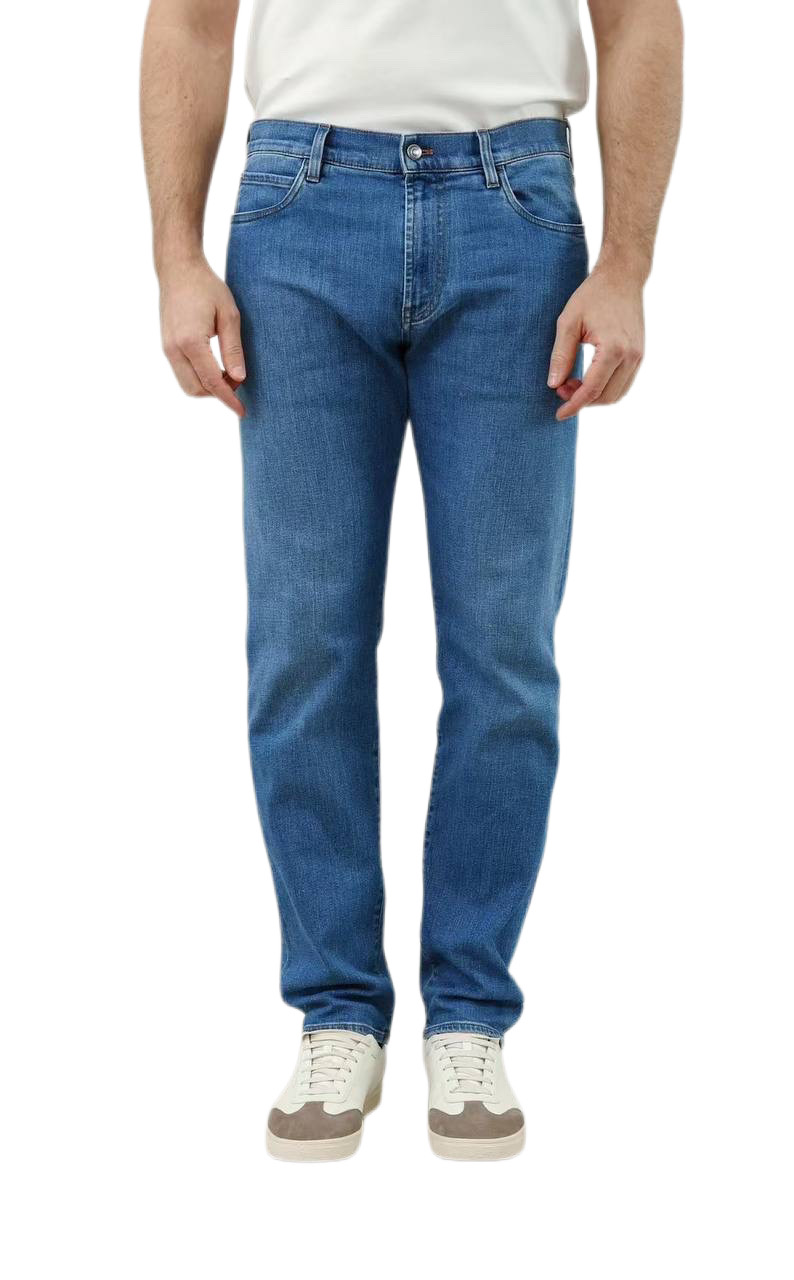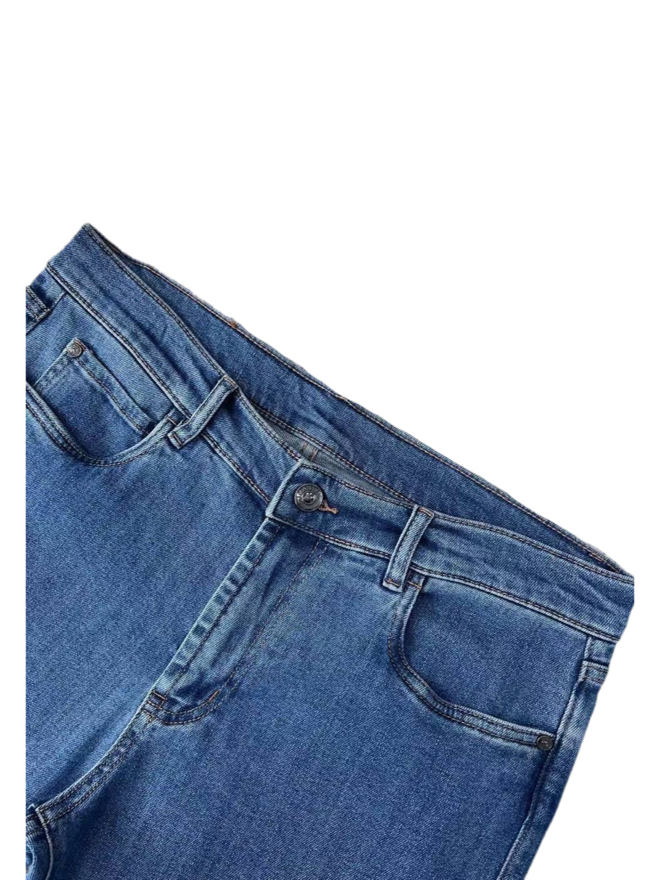 В классическую коллекцию вошли прямые джинсы с посадкой на талии. Модель сшита из прочного эластичного хлопка. Переплетение окрашенных и неокрашенных волокон придали ткани неоднородный цвет. Такие брюки в сочетании с рубашкой и туфлями они создадут классический образ в стиле free friday. Но нам нравится сочетать с белым свитером и кедами.