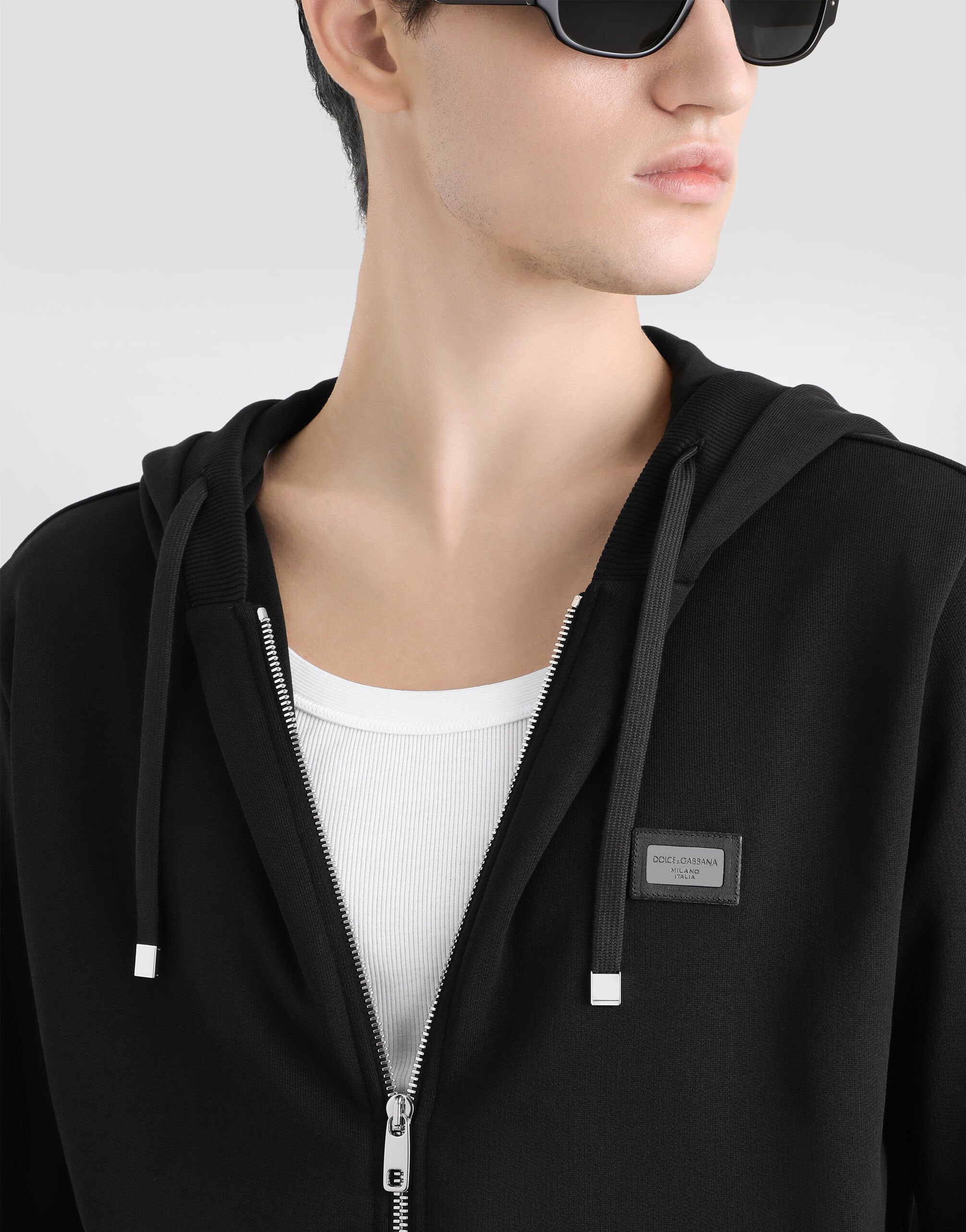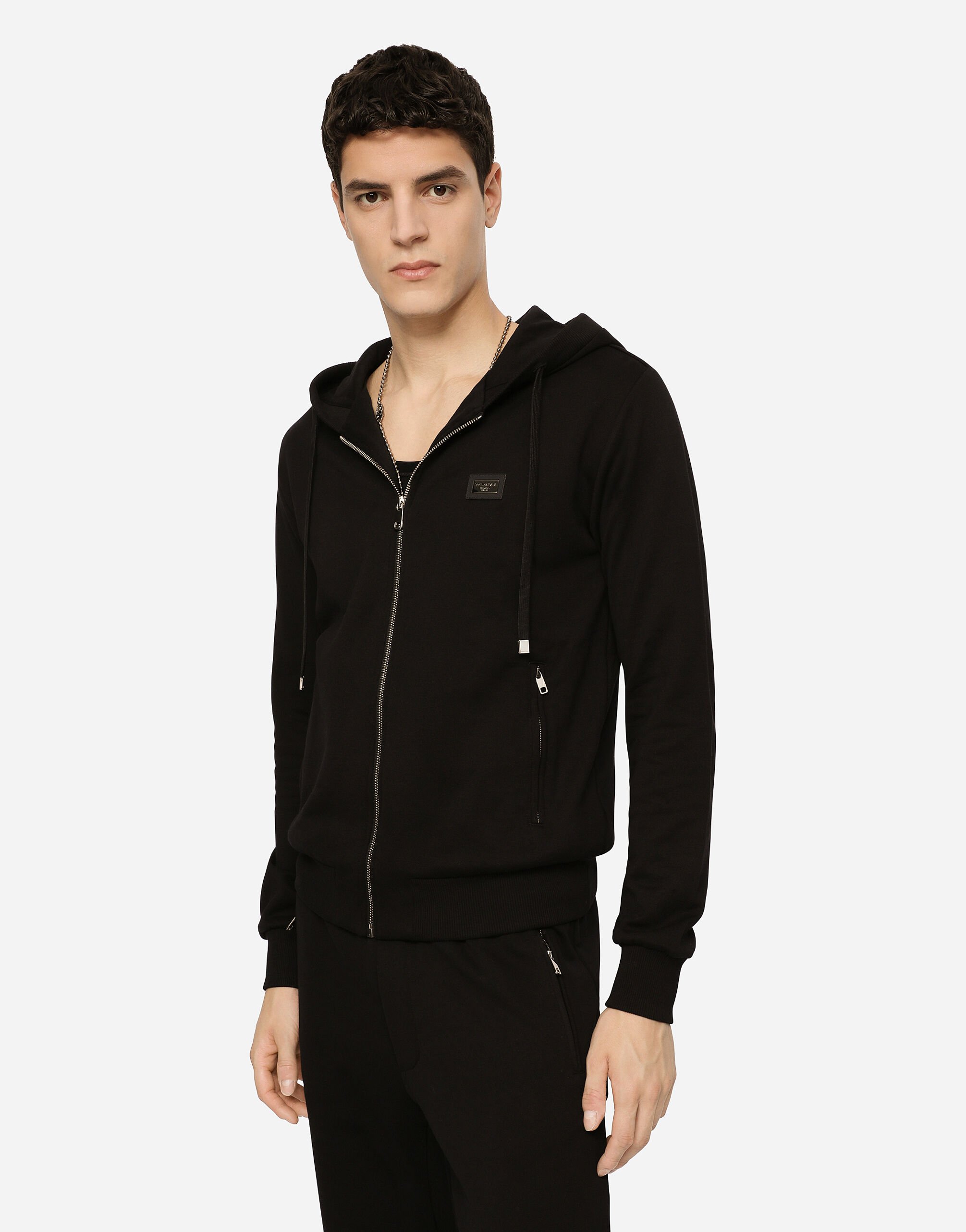 Брюки-джоггеры из хлопкового джерси украшены металлической пластинкой с логотипом Dolce&Gabbana: