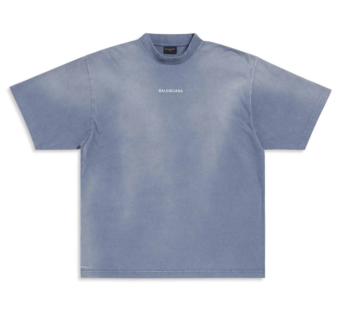 Футболка Balenciaga Back T-Shirt Medium Fit из винтажного джерси синего и белого цвета