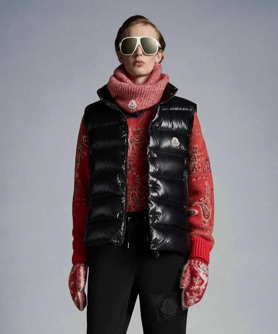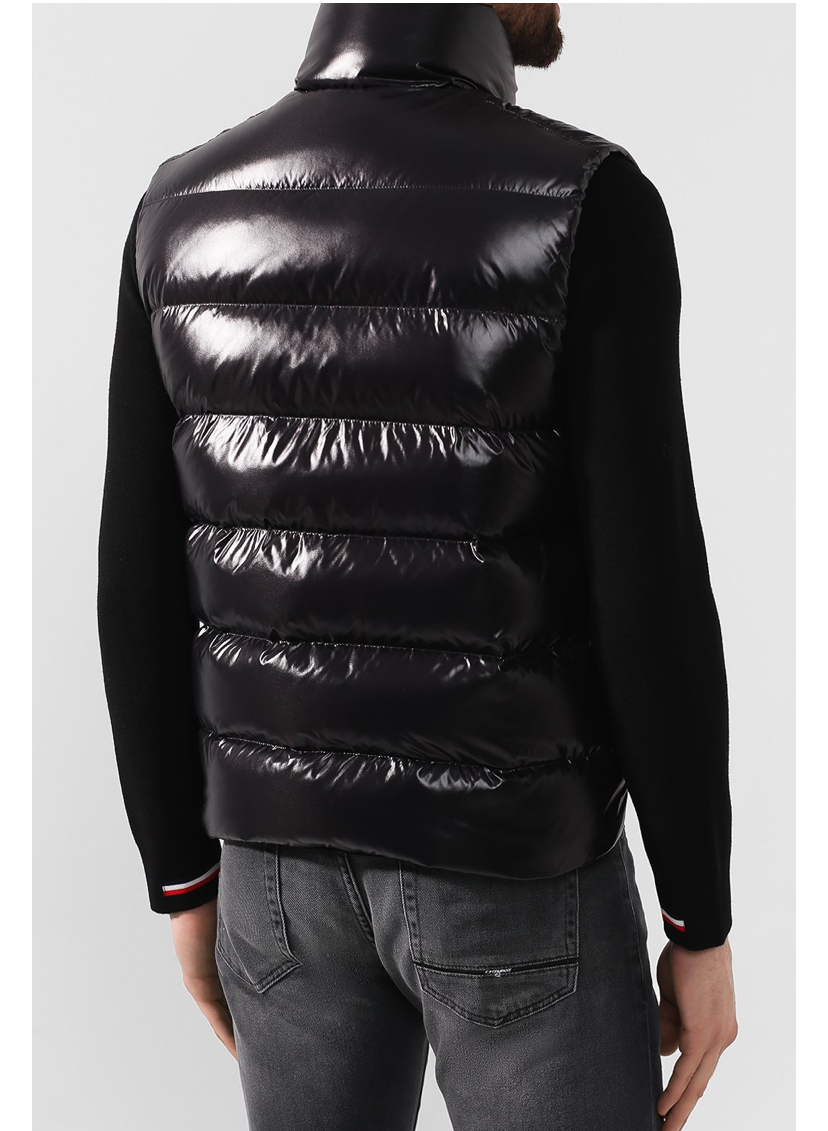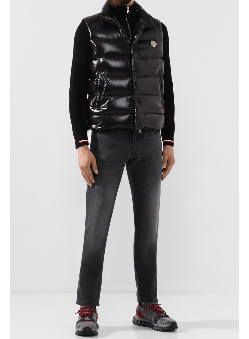 На создание черного жилета дизайнеров марки вдохновили архивные модели 1980-х. Изделие с характерным свободным силуэтом сшили из прочного гладкого нейлона. Наполнитель из гусиного пуха и пера хорошо сохраняет тепло, а воротник-стойка обеспечивает защиту от ветра. Лаконичная вещь из осенне-зимней коллекции дополнена неброским декором – фигурным патчем.
