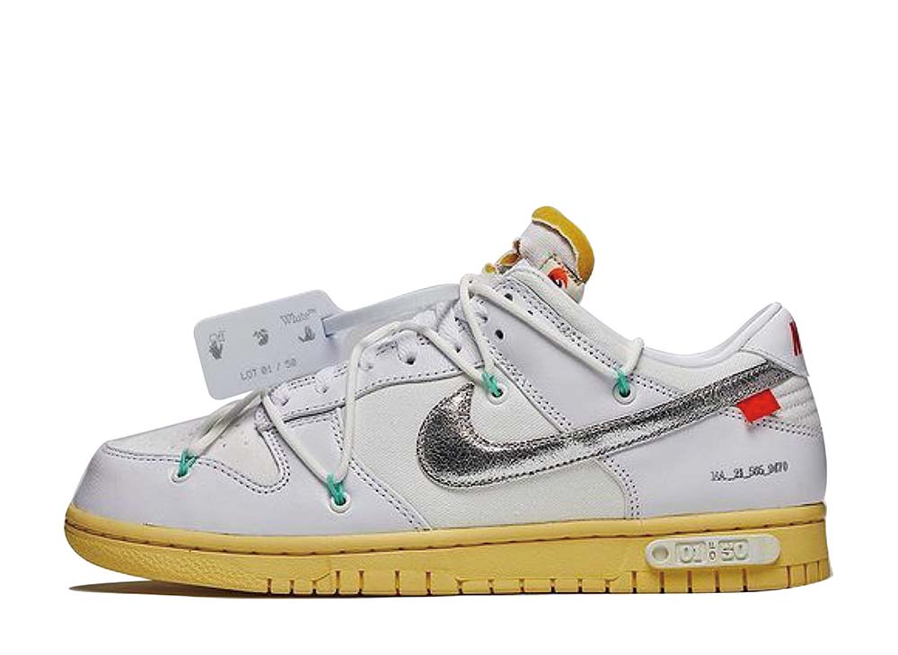 Off-White x Dunk Low— дебютная цветовая гамма коллекции «Dear Summer».Верх кроссовок выполнен из сочетания холста и кожи и окрашен в белый цвет, а боковая стенка украшена серебряным логотипом Swoosh.Веревочные шнурки, продетые сквозь нити Flywire, обеспечивают посадку вместе с традиционными шнурками, а открытый язычок из пеноматериала и предварительно пожелтевшая промежуточная подошва объединяются, чтобы добавить эстетики.Белая пластиковая застежка-молния, смещенная от центра бирка на язычке и текст Helvetica на внутренней стороне дополняют фирменные хиты Вирджила Абло.
