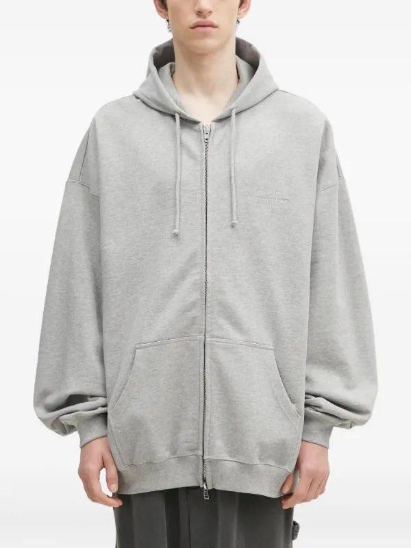 Свободную толстовку с накладными карманами и встречной молнией сшили из хлопкового трикотажа с добавлением полиэстера. Модель украсили вышитыми в тон логотипом спереди и названием капсулы Limited Edition на капюшоне.