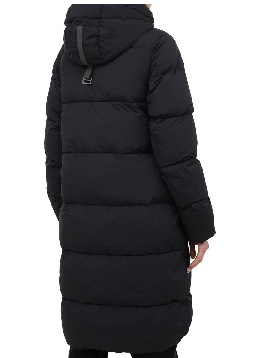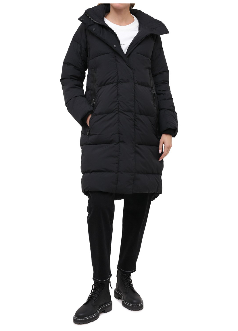 Черная стеганая куртка справится с капризами погоды. Для пошива моделииспользовали плотный непродуваемый нейлон, который не впитывает влагу. Наполнитель из отборного утиного пуха с добавлением пера поддерживает оптимальную для тела температуру даже в сильный мороз. Дополнительную защиту от непогоды обеспечивает съемный капюшон с воротником-стойкой.