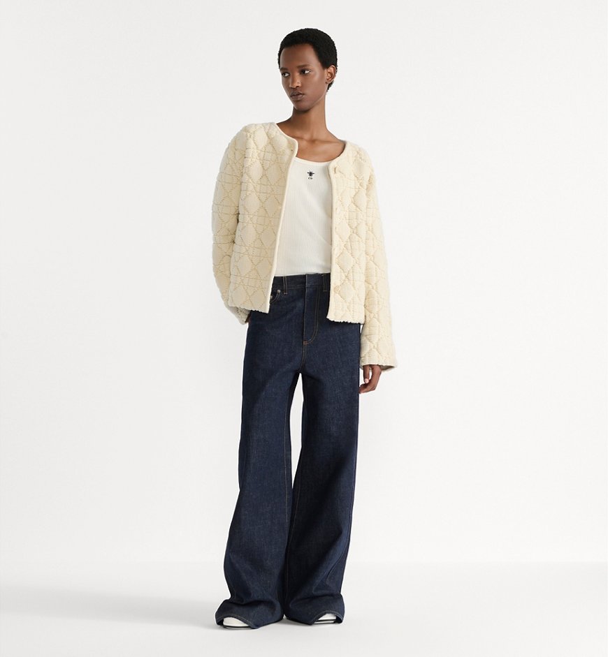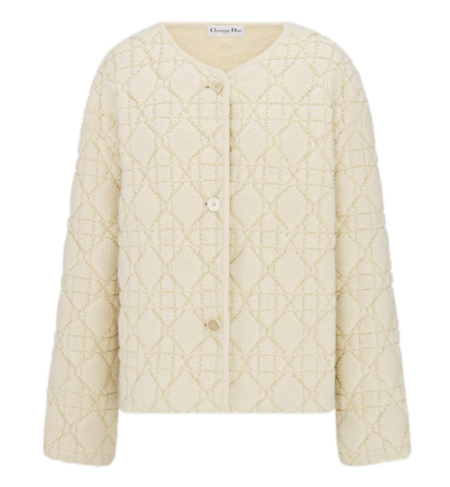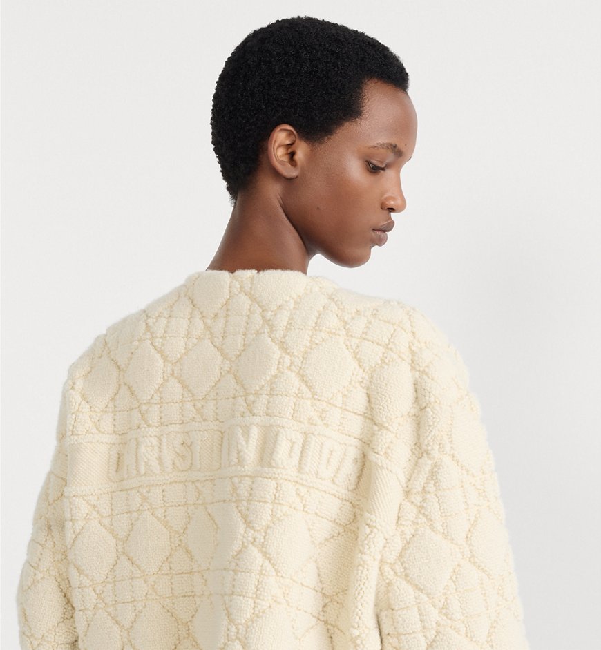 Куртка, входящая в капсульную коллекцию Dior Alps, переосмысливает коды элегантности Дома в непринужденном стиле. Связанная из белой смеси шерсти и кашемира с мотивом Cannage, она имеет прямой силуэт, украшенный ребристой отделкой. Куртка придаст изысканность любому повседневному образу этого сезона.