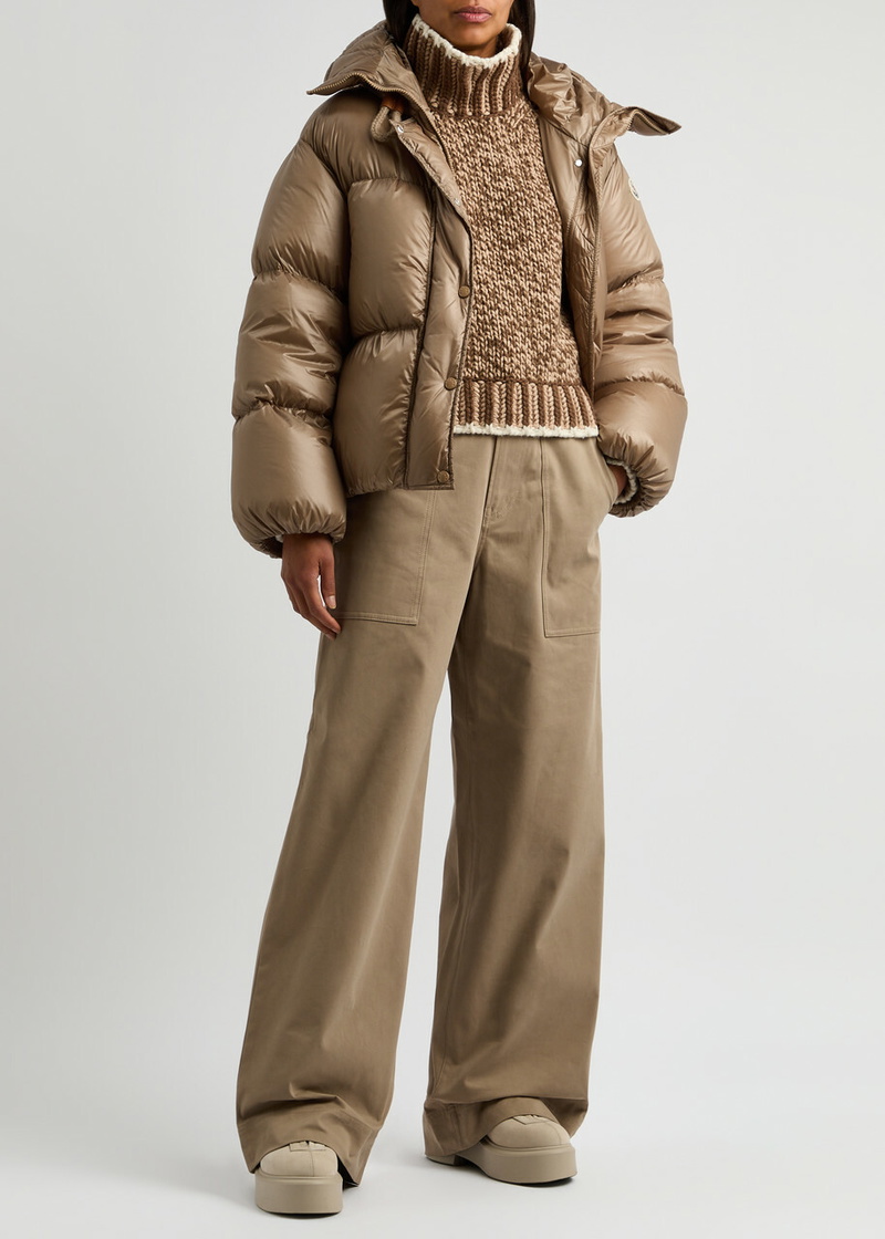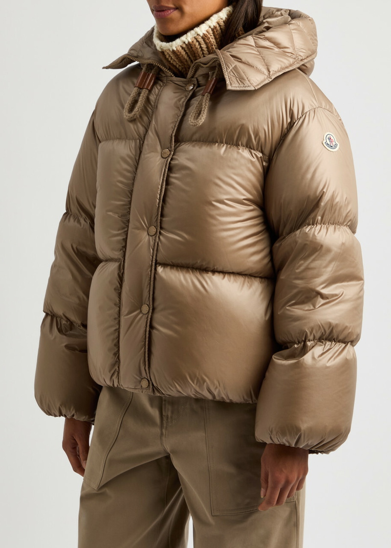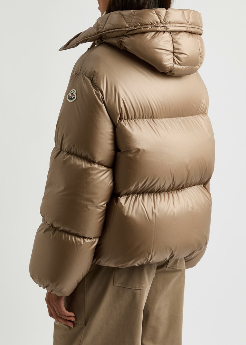Куртка-мешок Moncler Стеганая, капюшон затягивается шнурком, высокий ворот, дизайнерская аппликация на рукаве, застежка на кнопки на рукавах, боковые накладные карманы, эластичная отделка, полностью на подкладке. Частично потайная молния и застежка на кнопки спереди. 100% полиамид.