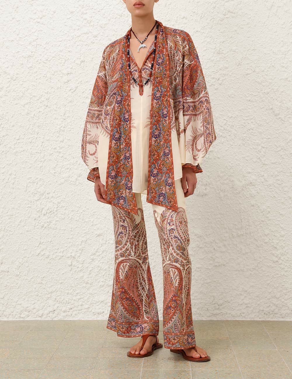 Блузка Rhiannon с завязкой на шее и кремовым узором пейсли из нашей коллекции Summer Swim 2025. Блузка-кейп из рами с завязкой на шее, пышными рукавами и присборенными эластичными манжетами.