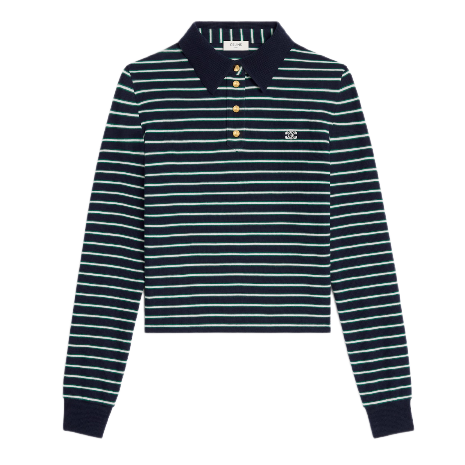 100% ХЛОПОК, ВЫШИВКА «ТРИУМФ», КЛАССИЧЕСКИЙ КРОШОК, ВОРОТНИК РУБАШКИ, ДЛИННЫЕ РУКАВА, РЕБРИСТАЯ ОТДЕЛКА, 4 КНОПКИ «ТРИУМФ».