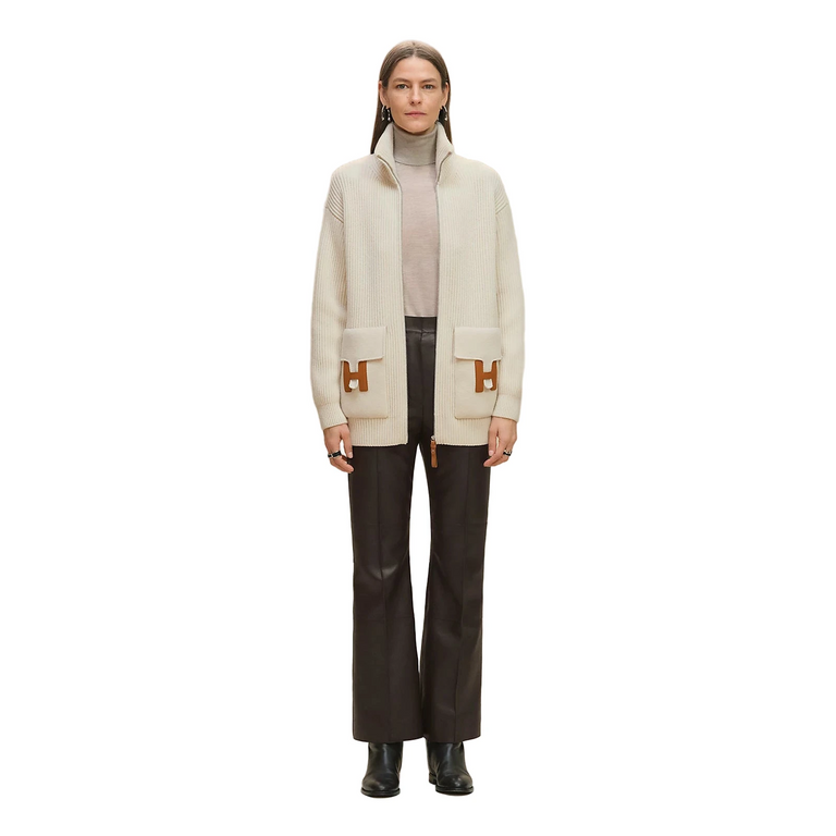 – Боковые накладные карманы с кожаными деталями в виде буквы «H».