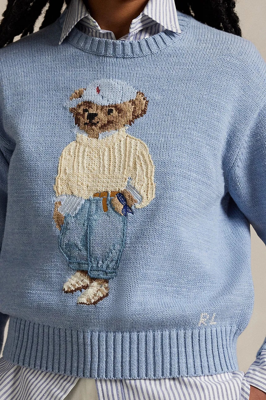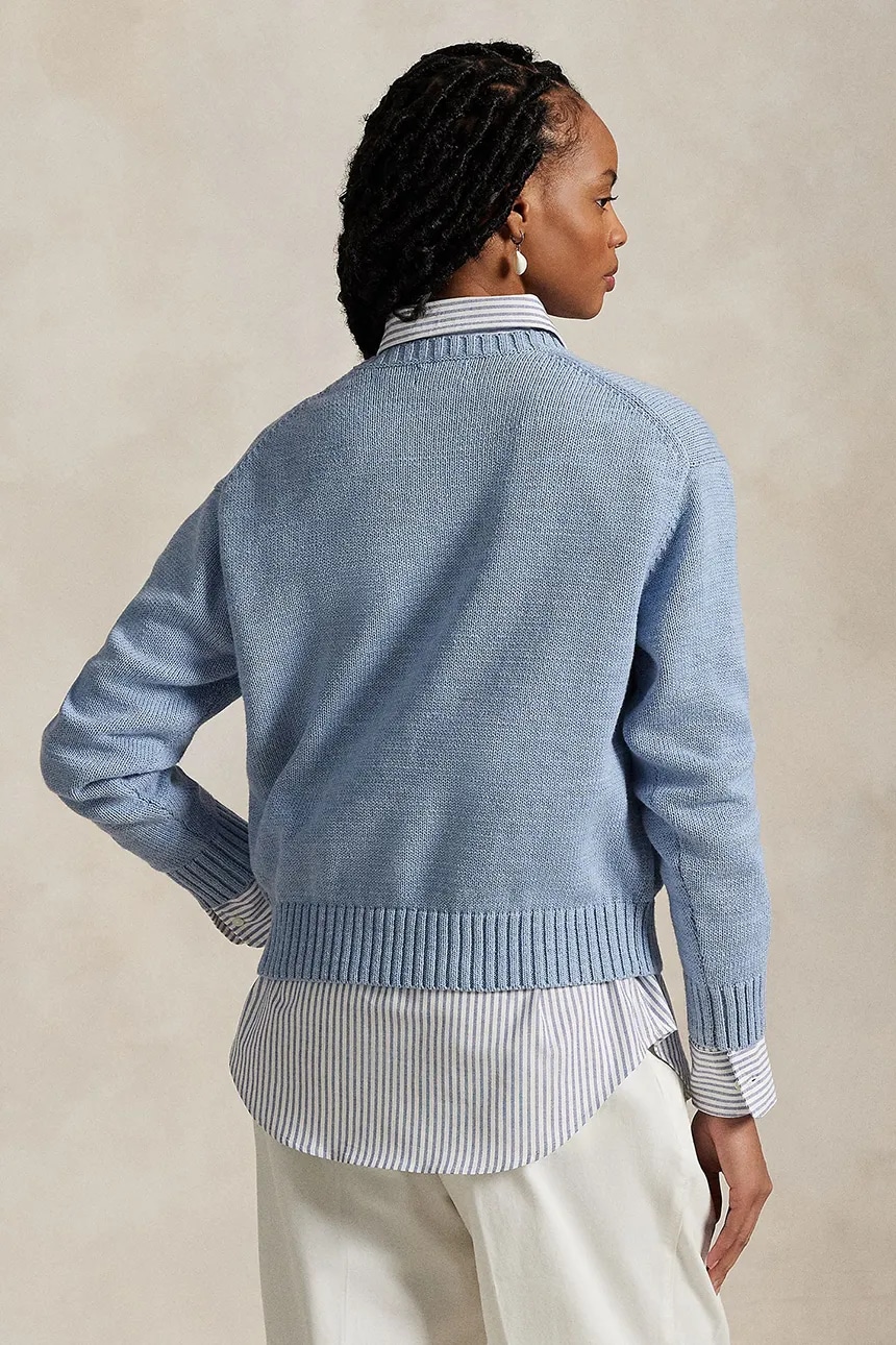 вязаный, жаккард, средней плотности трикотаж, логотип бренда, бусины, разноцветный, круглый вырез горловины, длинные рукава.