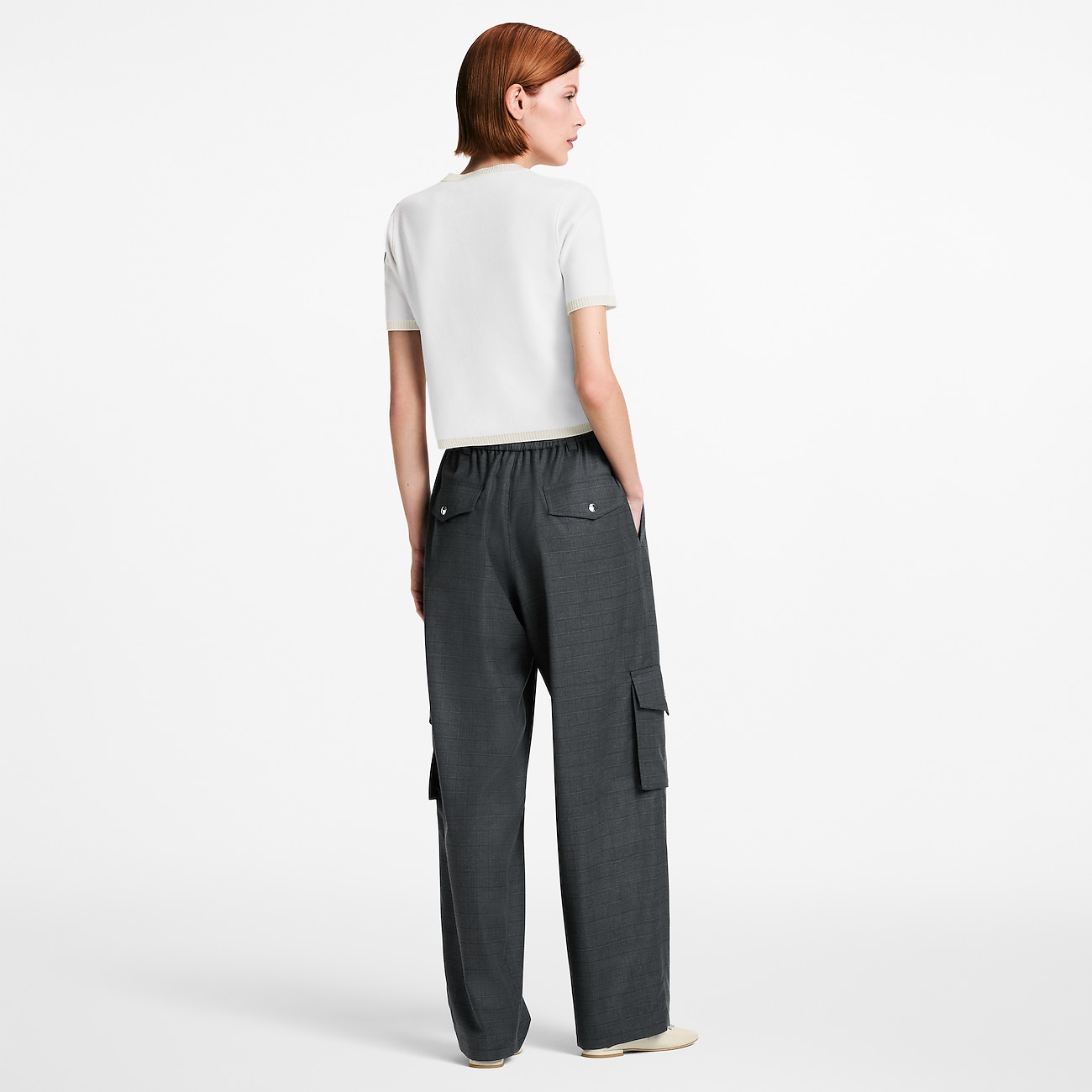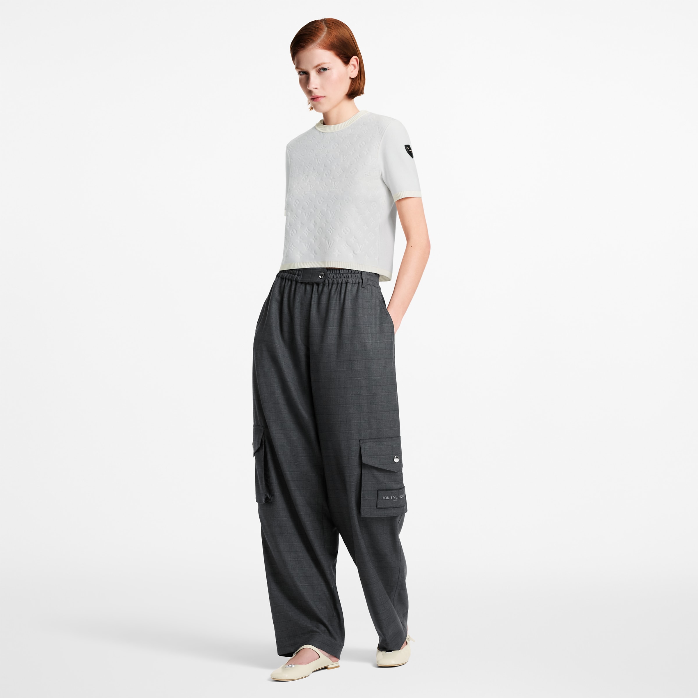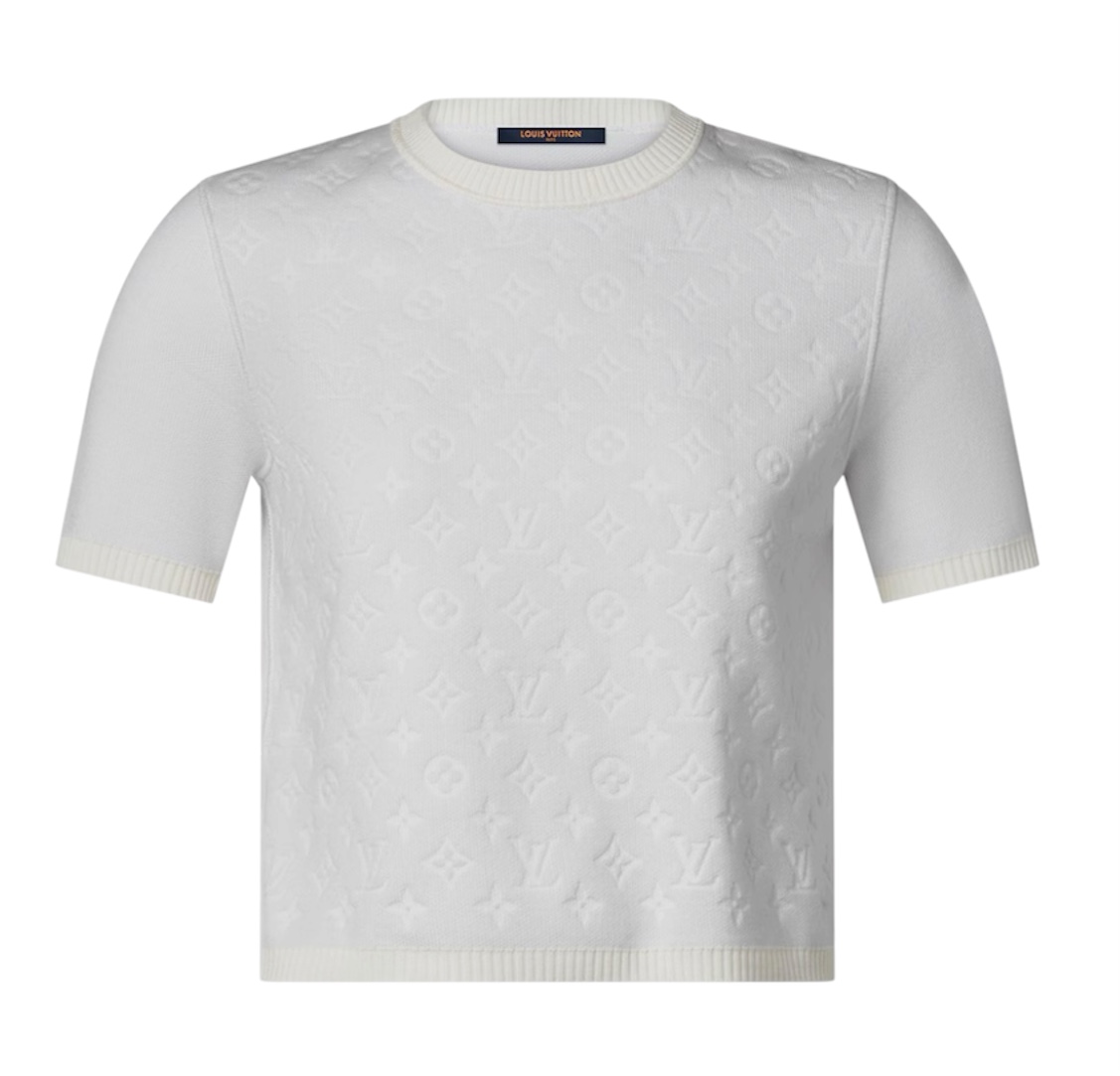 Этот вязаный топ — стильная повседневная вещь, выполненная из мягкой шерстяной смеси с ребристой отделкой по линии выреза горловины, коротким рукавам и талии. Передняя часть украшена ненавязчивым рельефным монограммным мотивом в тон, а кожаная нашивка Louis Vuitton Paris добавляет изысканности левому плечу.
