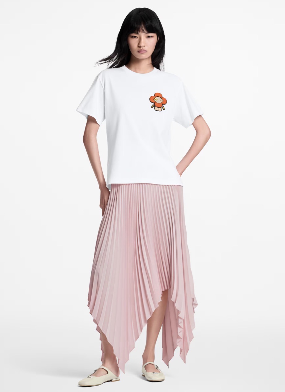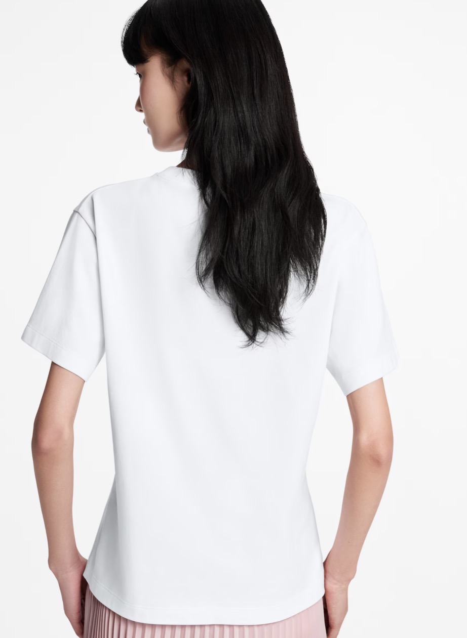 Эта футболка — стильная базовая вещь из мягкого хлопкового трикотажа классического прямого кроя с ребристым круглым вырезом. На груди красуется игривая нашивка Vivienne яркого цвета, дополненная едва заметными цветочными монограммами, создающими современный образ в стиле Дома моды.