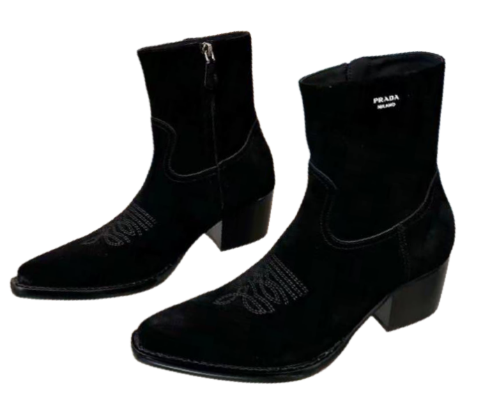 Техасские ботильоны переосмыслены благодаря дизайну с четкими линиями, сочетающему в себе традиции ремесленного производства и инновации. Обувь изготовлена из замши, что придает ей изысканный и универсальный вид.