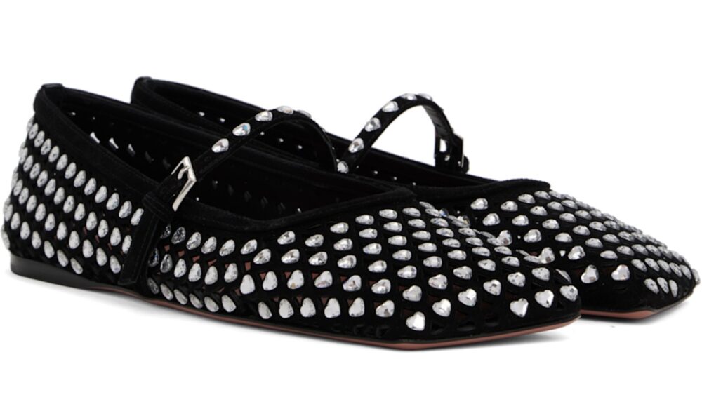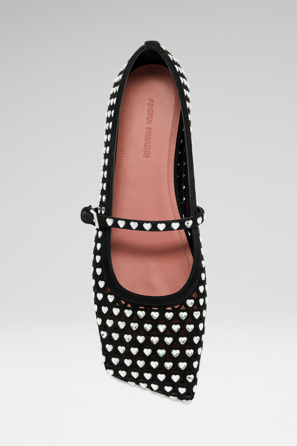 Балетки Amina Muaddi Ane Crystal Heart Черные