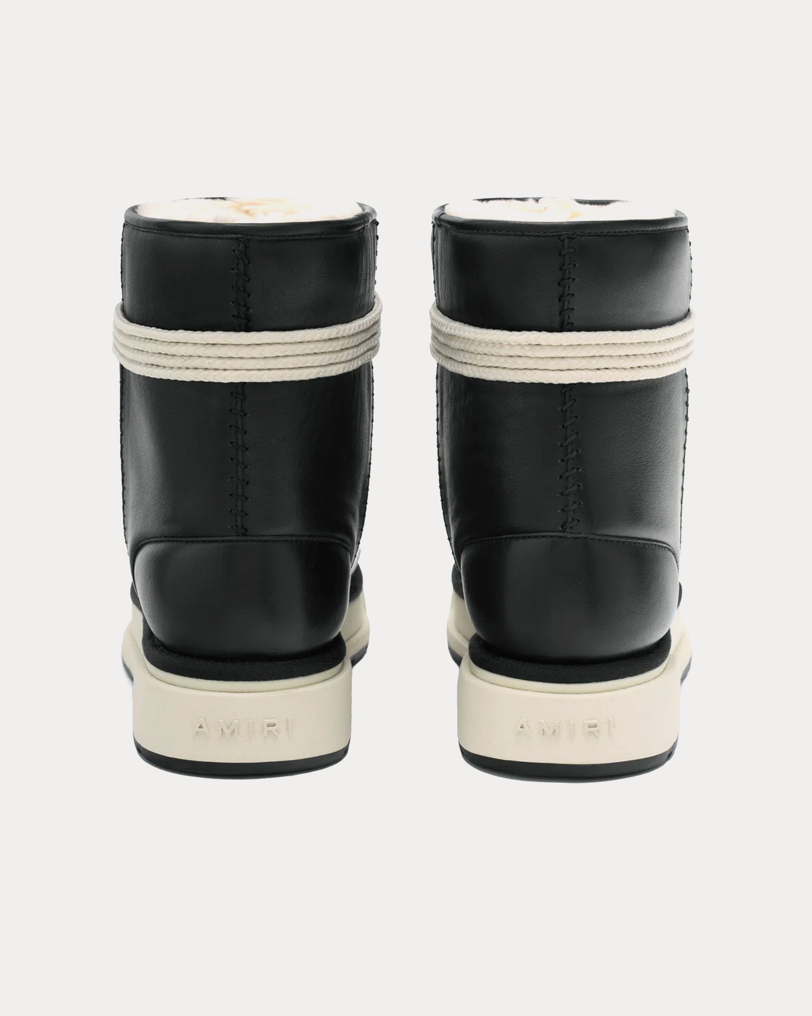 Высокие сапоги AMIRI Black Malibu сочетают в себе динамичное сочетание роскошной фактуры и городского стиля, окутывая вас мягким искусственным мехом, который выглядит так же роскошно, как и ощущается на ощупь. Эта эффектная модель длиной до щиколотки – воплощение смелости и выразительности благодаря стильной шнуровке спереди, украшенной культовым логотипом бренда. Внутри роскошная подкладка из овчины окутывает ваши ноги теплом и комфортом – идеальный вариант как для прогулок в прохладную погоду, так и для прогулок по городу. Контраст между эффектным внешним видом и мягкой, изысканной внутренней частью говорит об умении AMIRI сочетать высокую моду с непринужденной атмосферой.