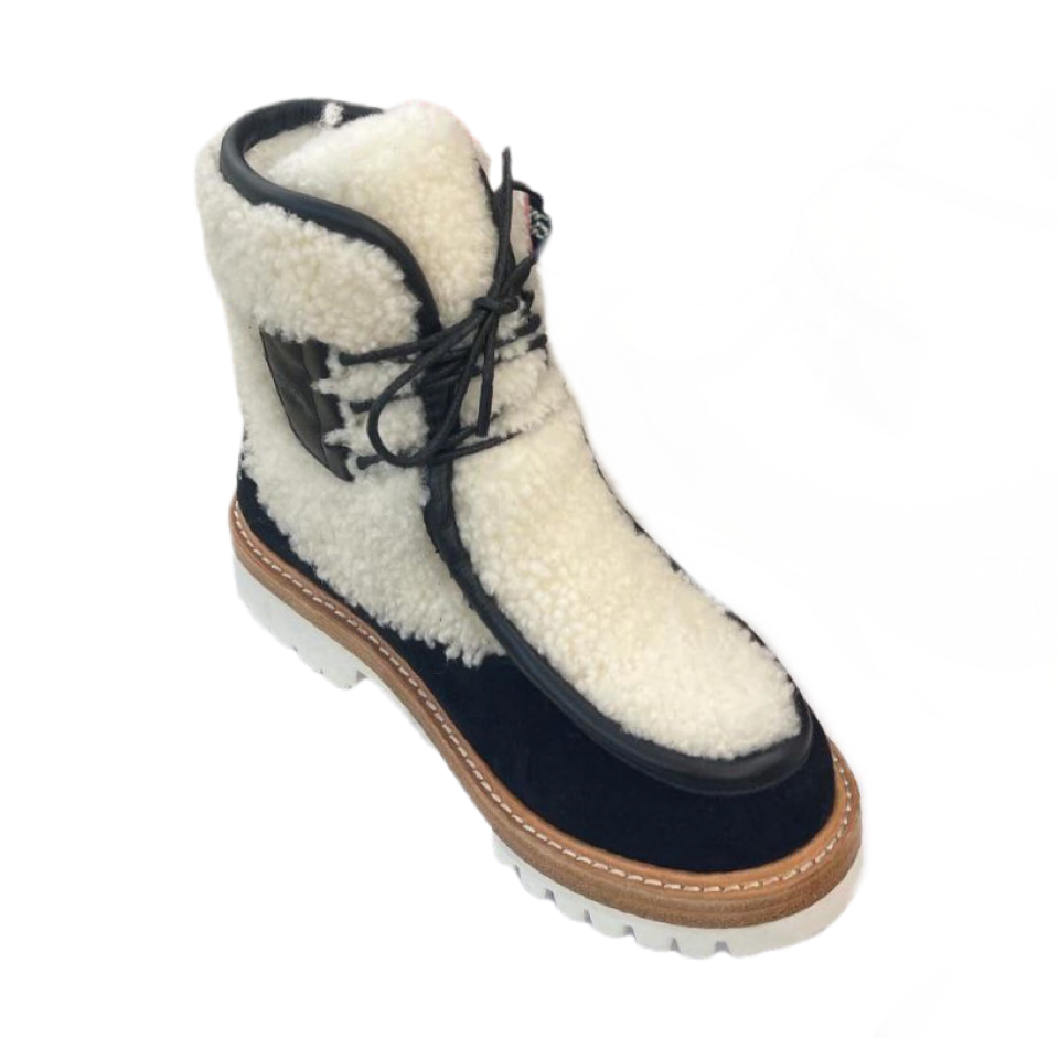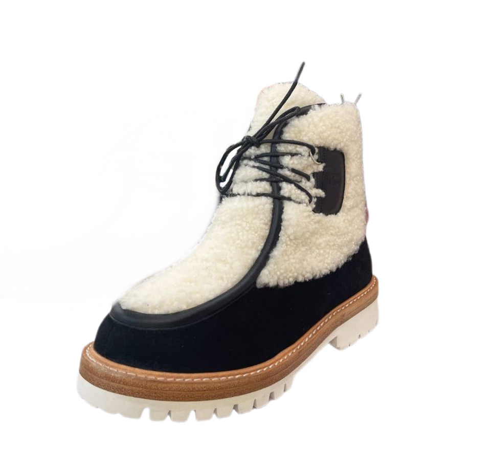 Не нужно мерзнуть, чтобы быть в тренде! Смело надевайте черные ботинки Margaret из новой коллекции Celin е и наслаждайтесь теплом! В них вам будет очень комфортно, при этом выглядеть вы будете стильно и модно.Модель на тракторной подошве выполнена из натуральной замши и дополнена вставками из овчины.