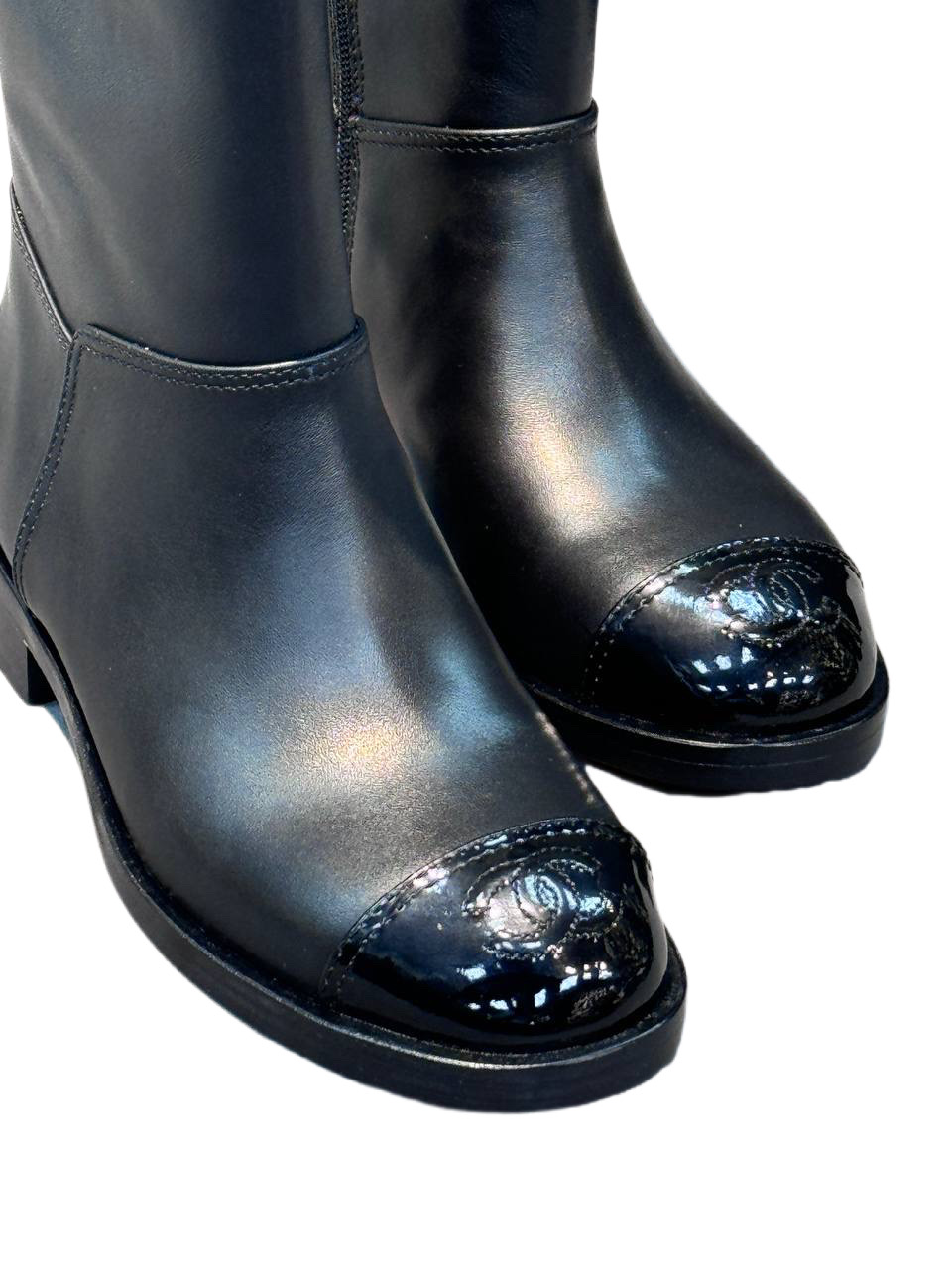 БотинкиПри выборе обуви следует обращать внимание на качество, удобство и, конечно, одинаковый внешний вид.Эти ботинки из новой коллекции Шанель выполнены из кожи со вставками. Эта пара обуви выполнена в классическом черном цвете, а это значит, что ее можно комбинировать с максимальным количеством образов.