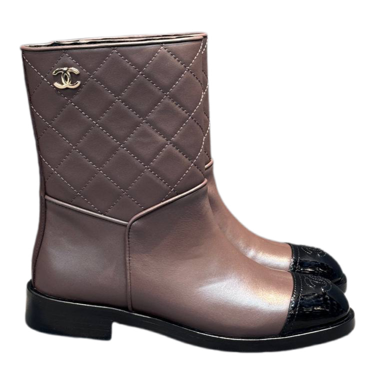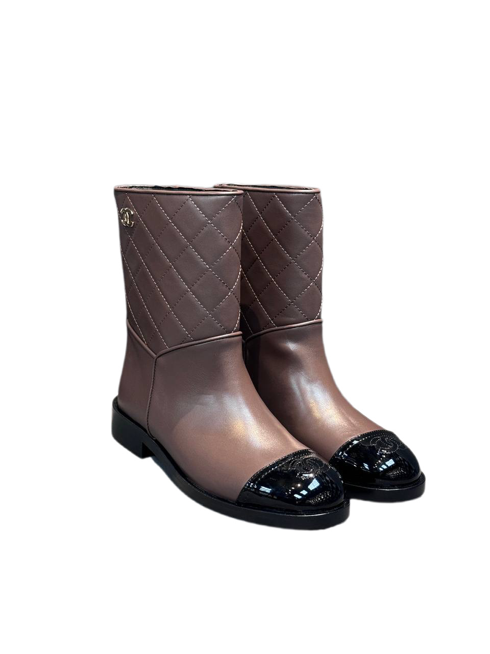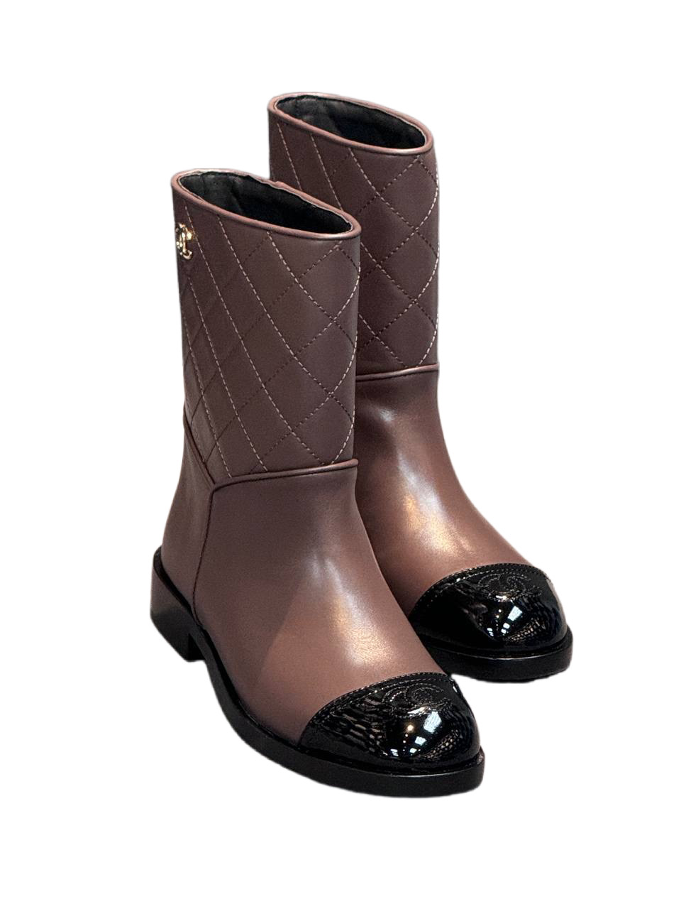 Лаковые Ботильоныот CHANEL, Круглый носок, Стиль для вечеринки, Элегантный стиль, Повседневный стиль, Уличный стиль, Однотонные, Логотип, Туфли на толстом каблуке