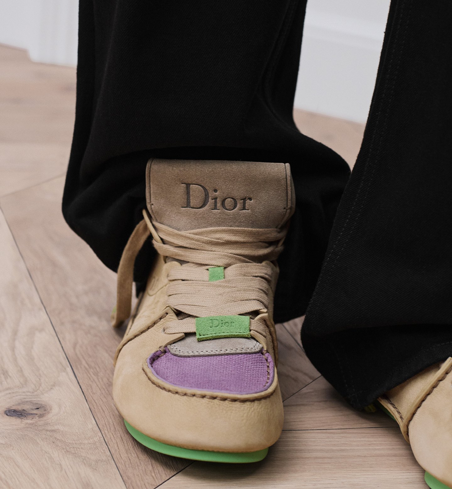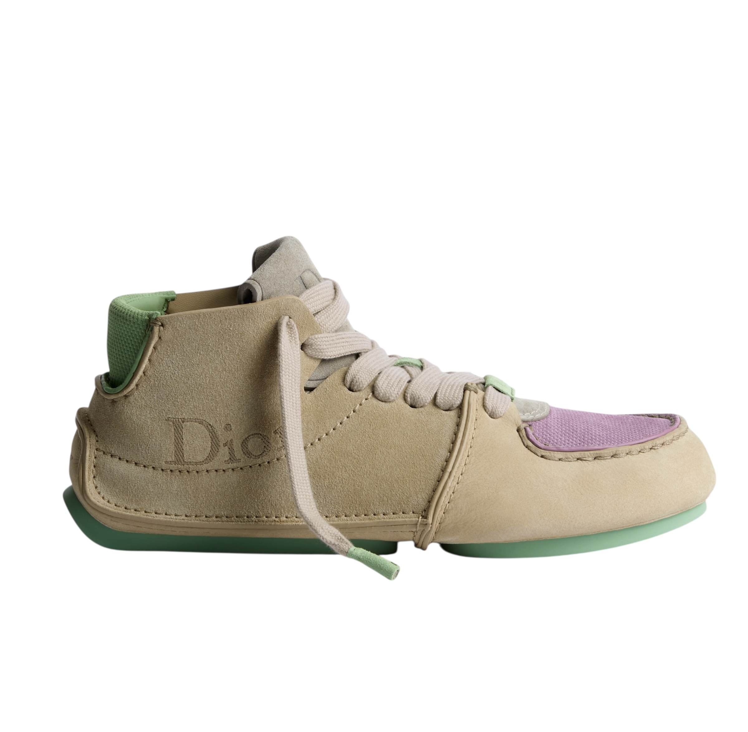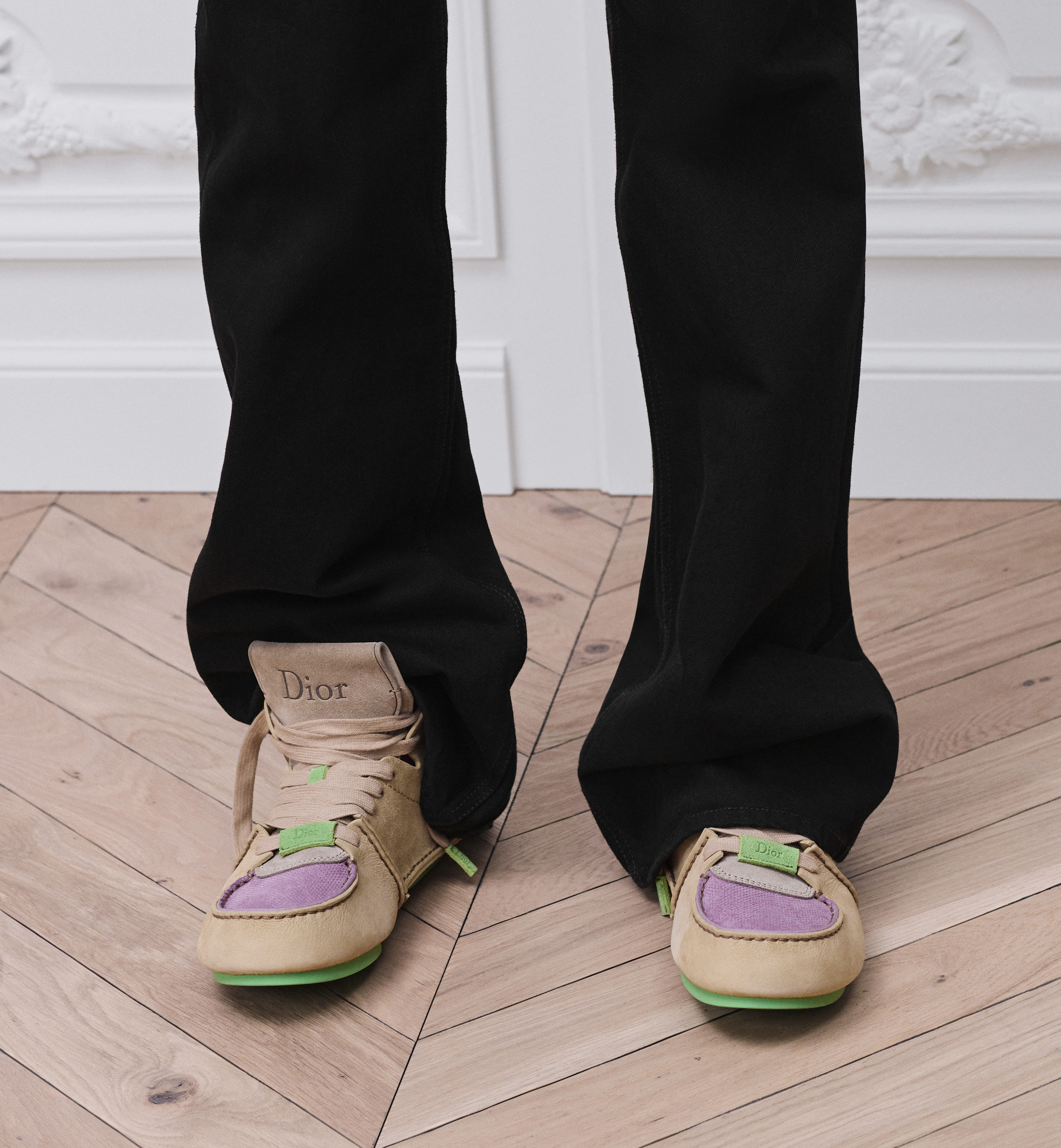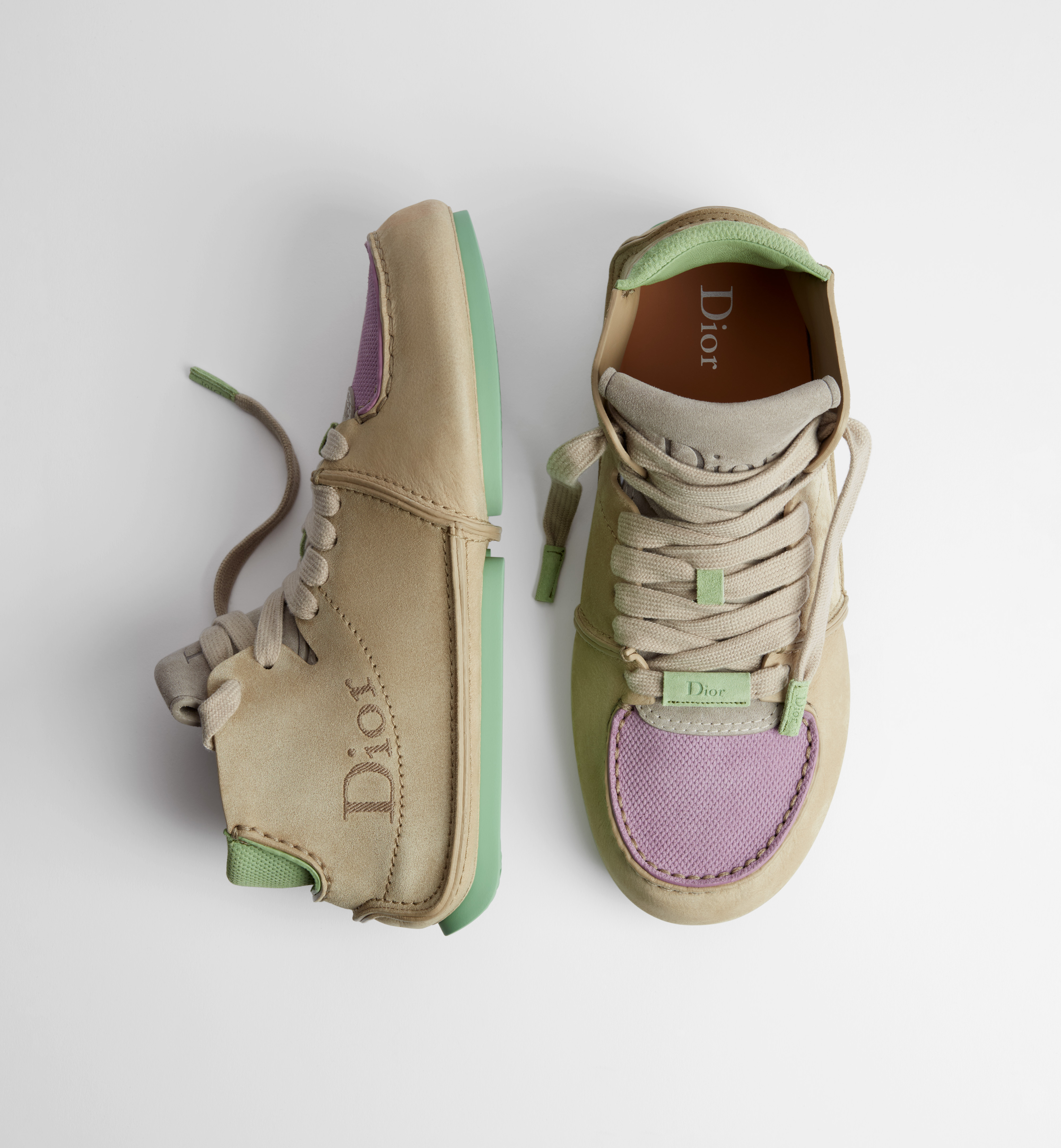 - Хлопковая шнуровка и замшевые наконечники из телячьей кожи с фирменным знаком Dior.