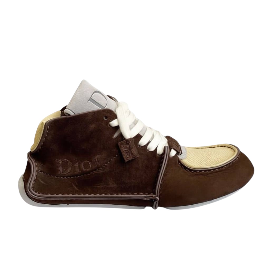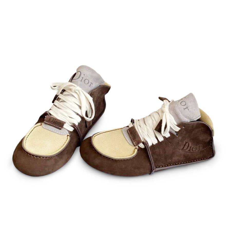 - Хлопковая шнуровка и замшевые наконечники из телячьей кожи с фирменным знаком Dior.