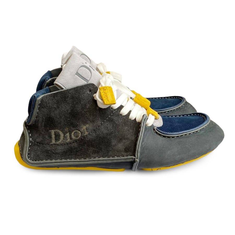 - Хлопковая шнуровка и замшевые наконечники из телячьей кожи с фирменным знаком Dior.